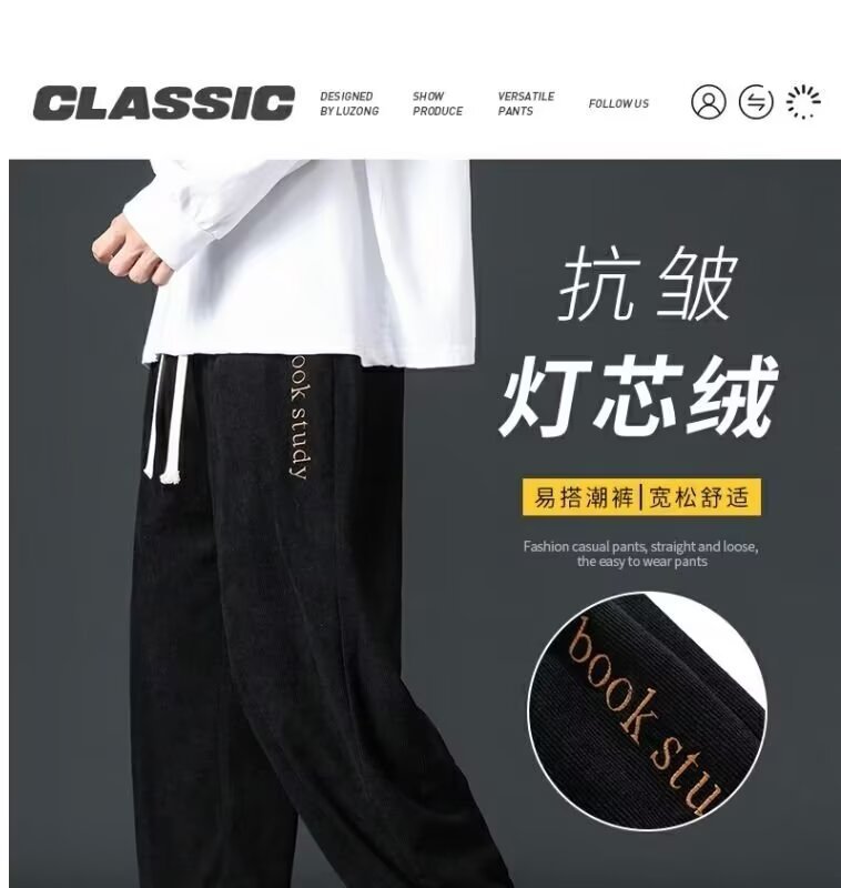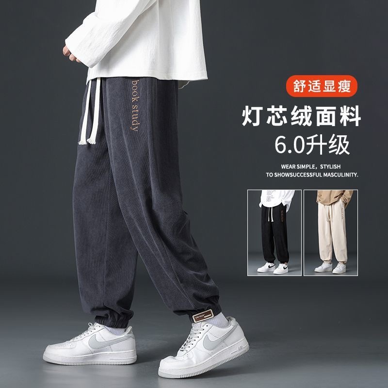 Приливная бренд свободные повседневные вельветовые брюки вельветовые брюки мужские осенние и зимние спортивные штаны для мальчиков с вышивкой буквой флисовые брюки