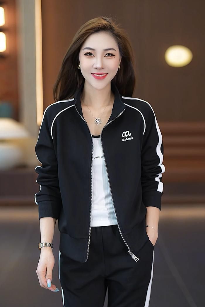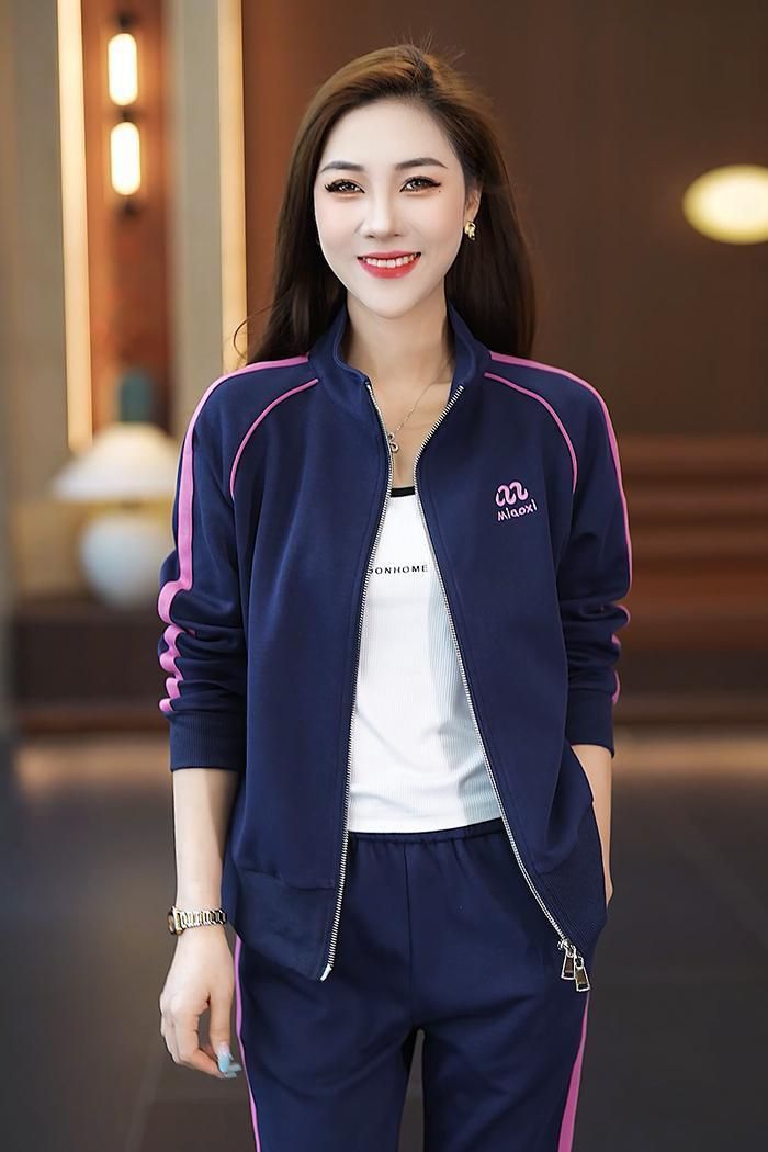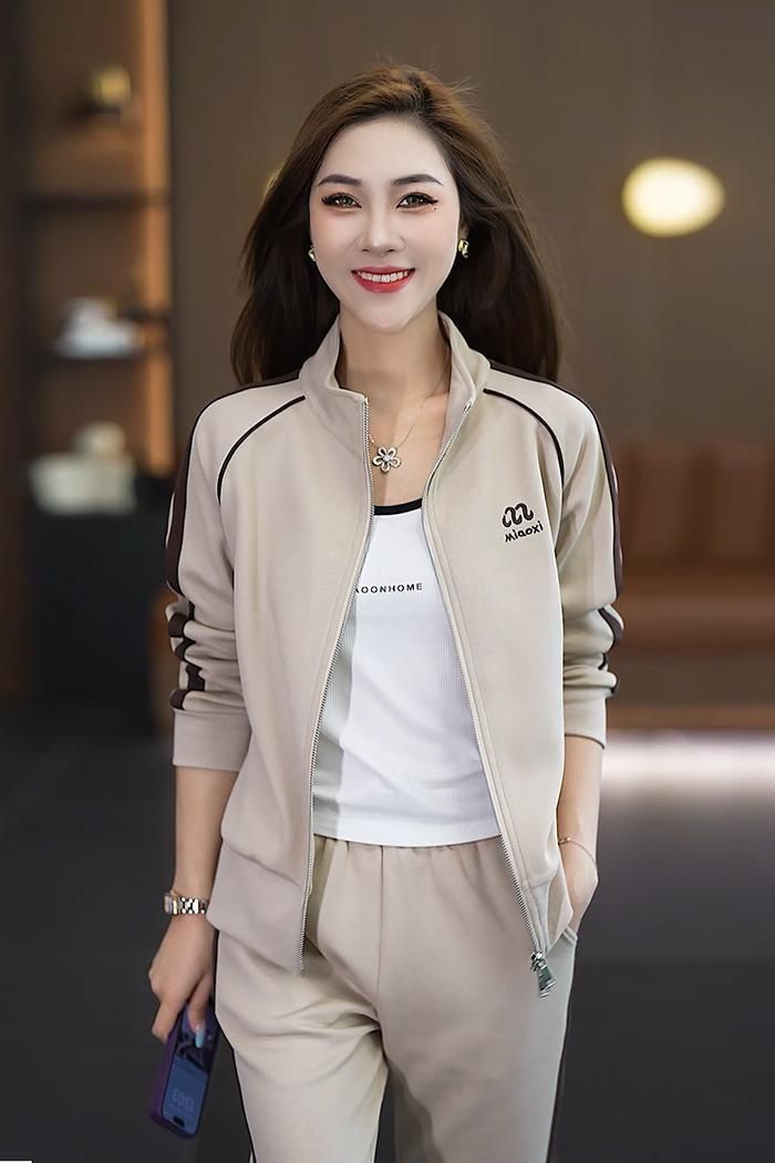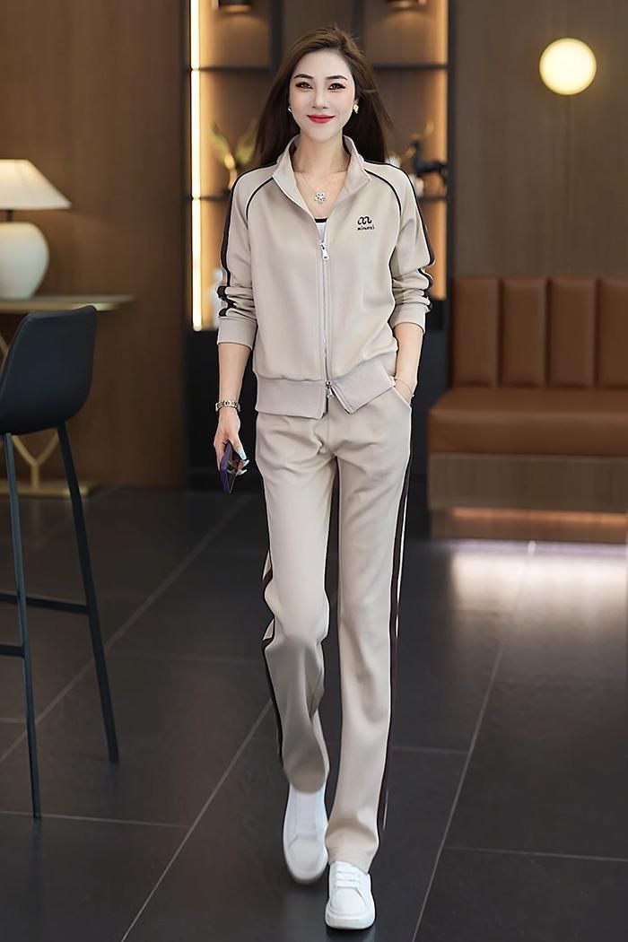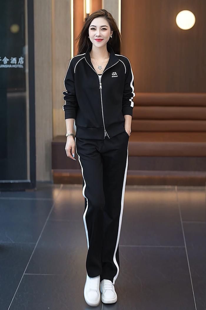 Внешняя торговля повседневная спортивная одежда женская осень и зима 2024 новая мода стройная толстая куртка широкие брюки из двух частей