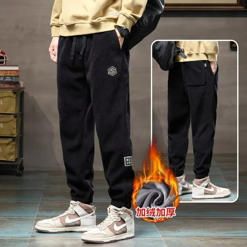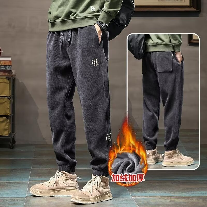 Модные утолщенные теплые брюки для ног Осень и зима новые фланговые брюки