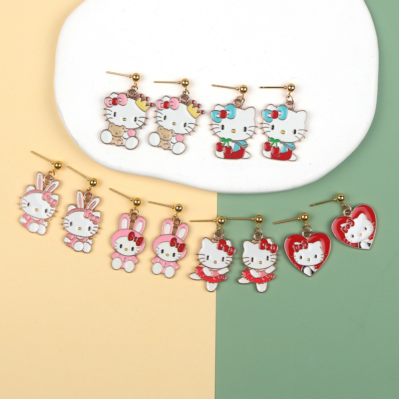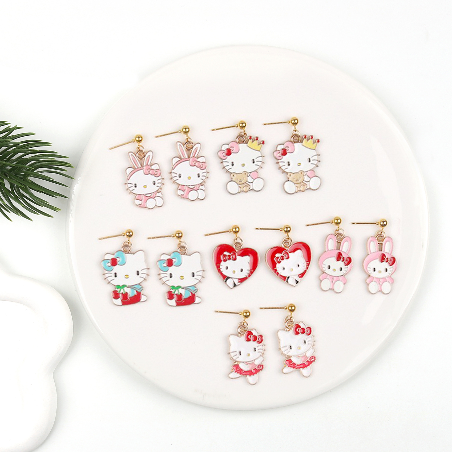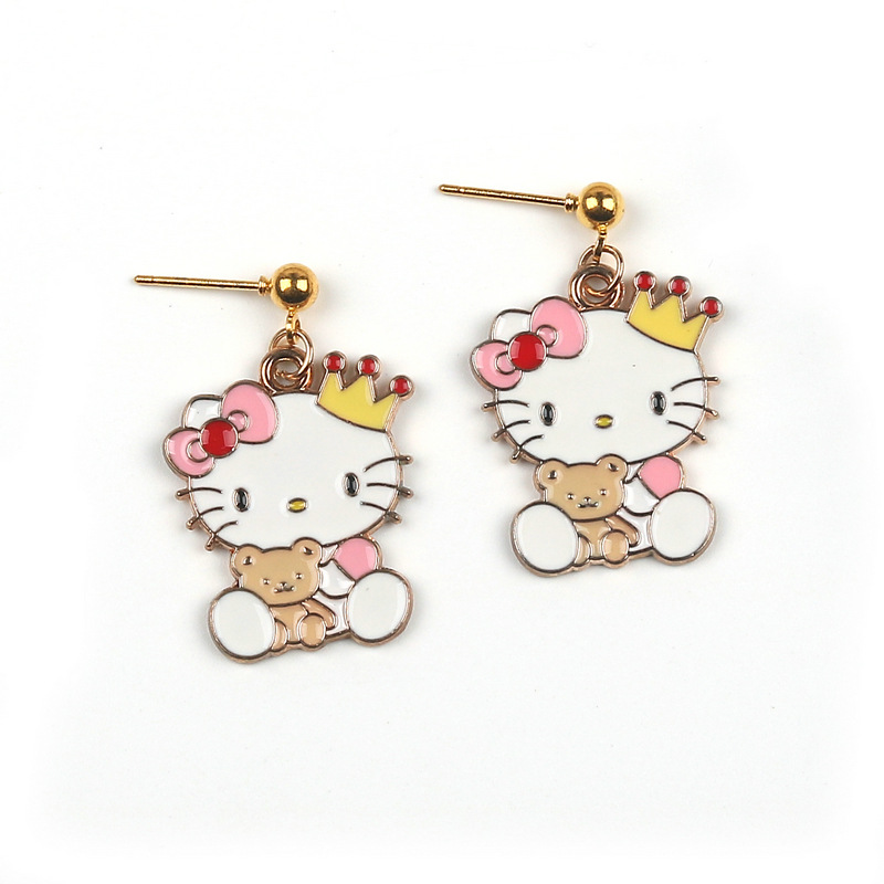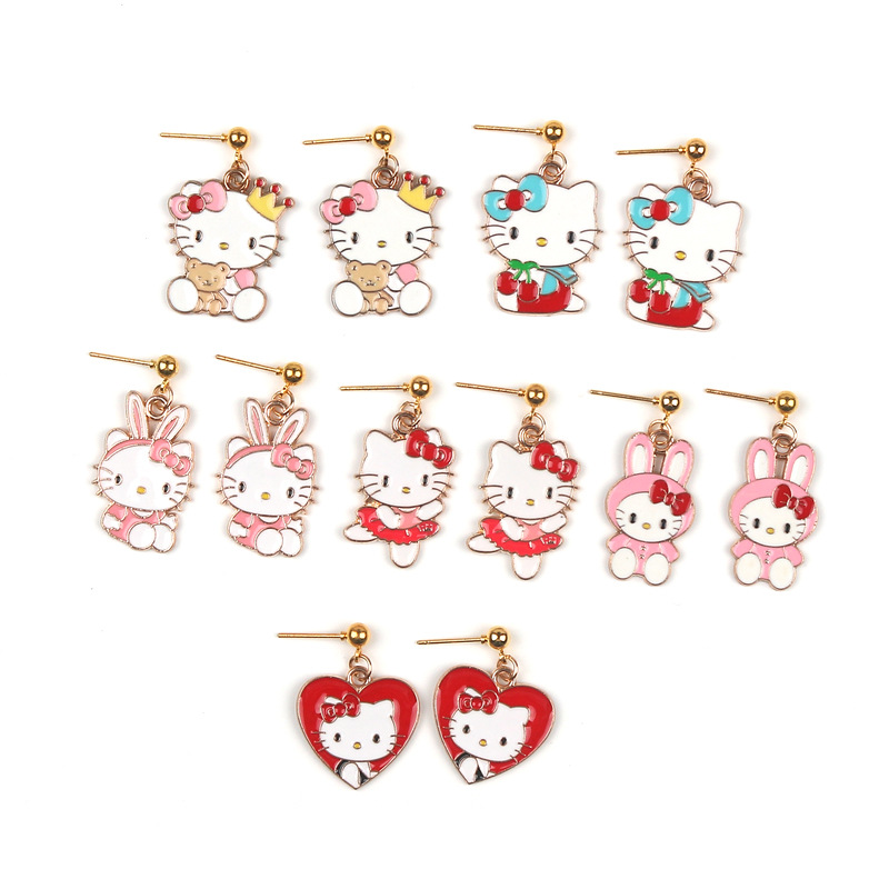 Мультяшная кошка любовь серьги DIY ювелирные изделия капли масла сплава серьги Sanrio DIY трансграничные горячие серьги