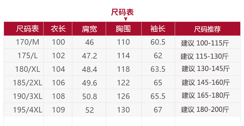 170/м( 50-62.5kg ); 175/л( 62.5-67.5kg ); 180/XL( 67.5-75kg ); 185/2XL( 75-82.5kg ); 190/3XL( 82.5-90kg ); 195/4XL( 90-100kg )