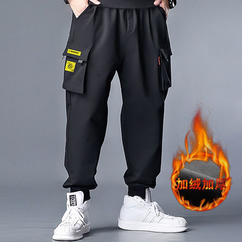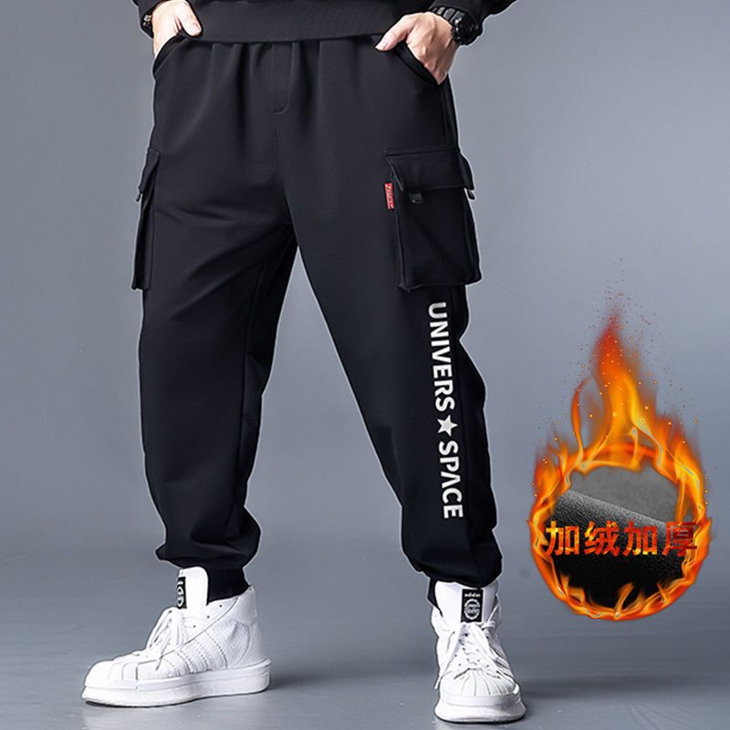Осенние и зимние повседневные брюки большого размера, мужские толстые, толстые и свободные, дышащие брюки, мульти-карманные брюки, мужские брюки