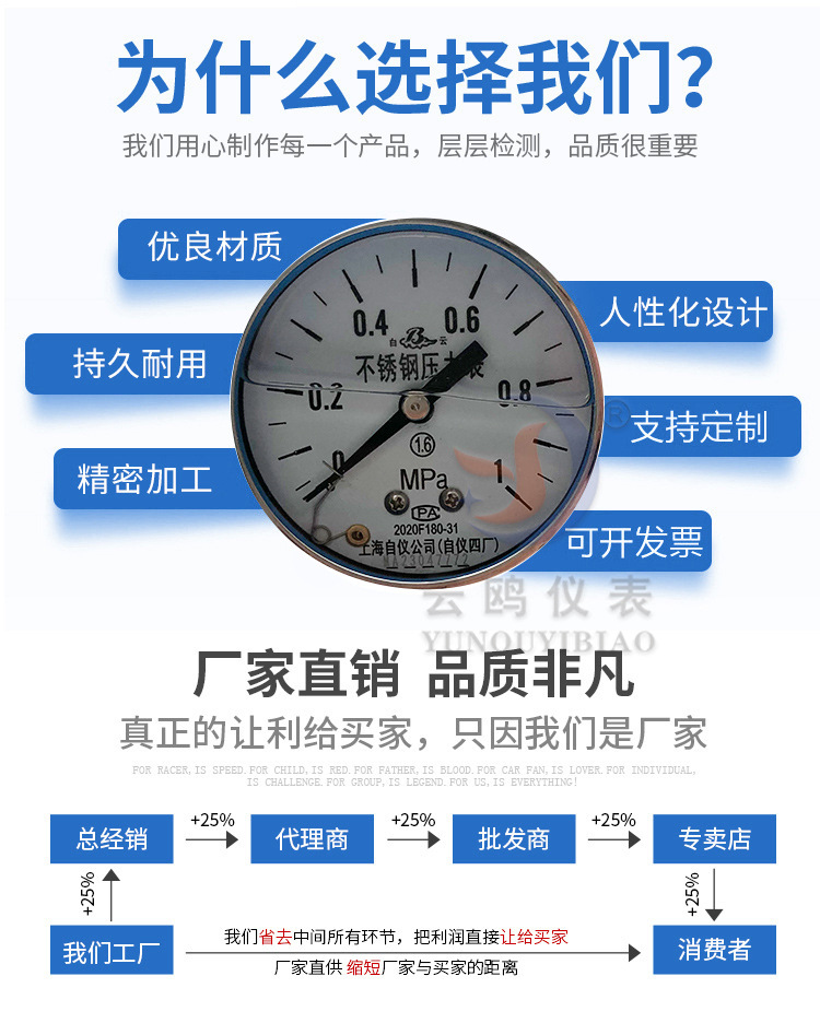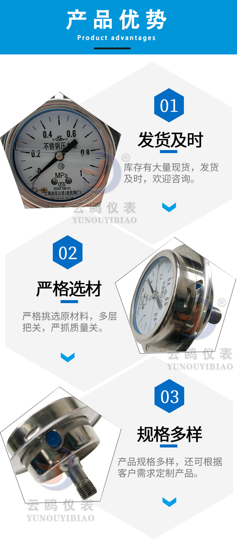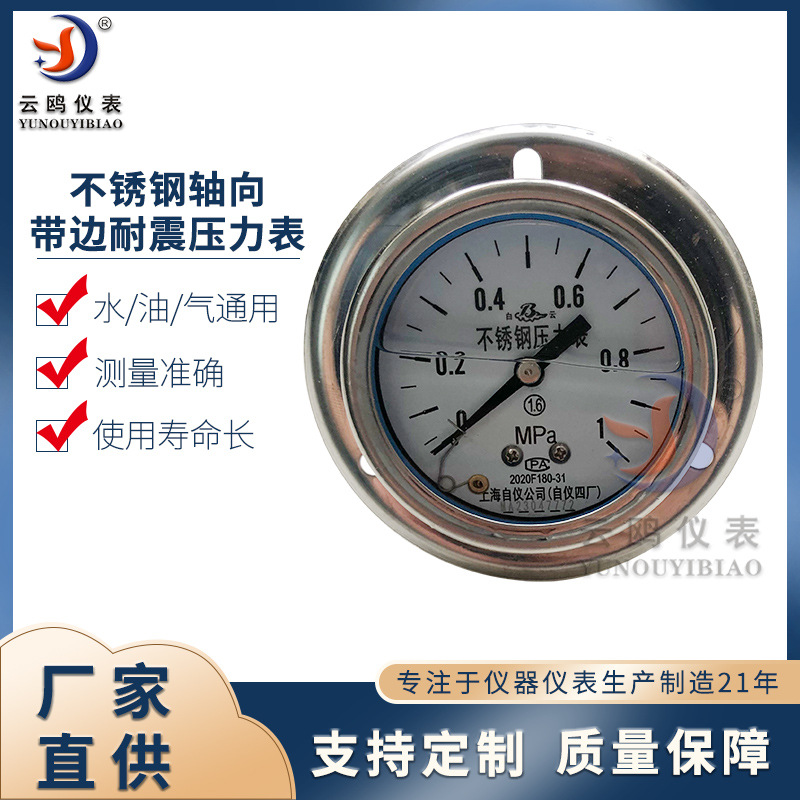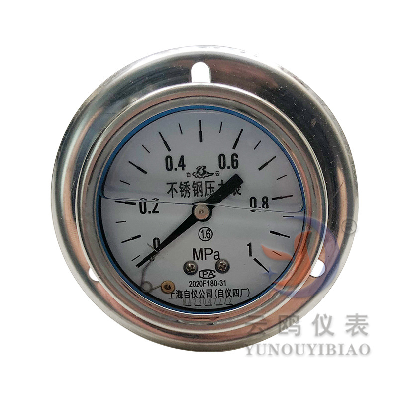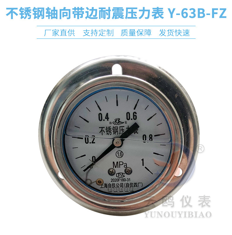 Ударопрочный манометр осевого пояса из нержавеющей стали Шанхайский завод № 4 Y-63B-FZ Шанхайский завод автоматики № 4