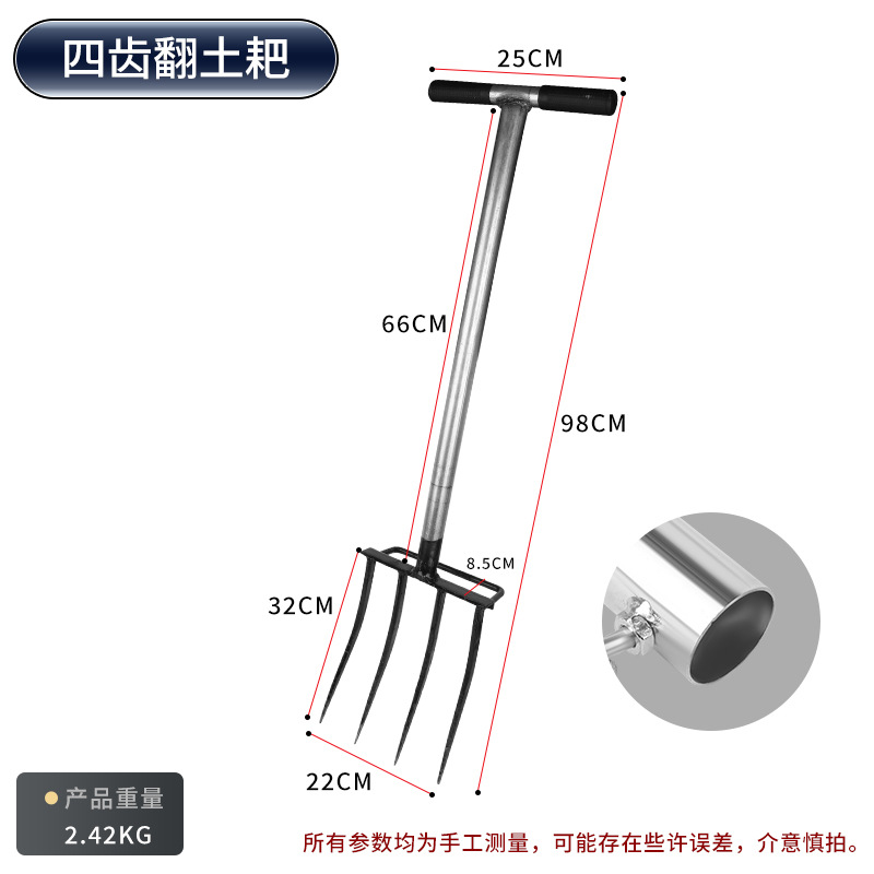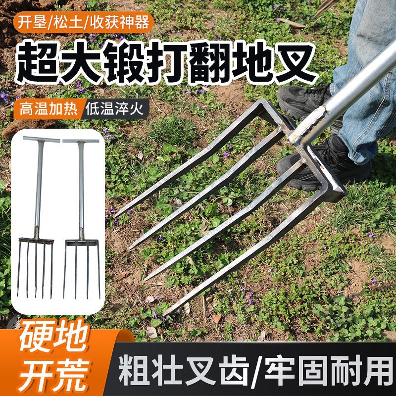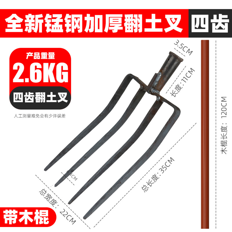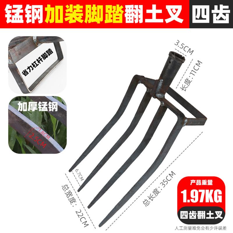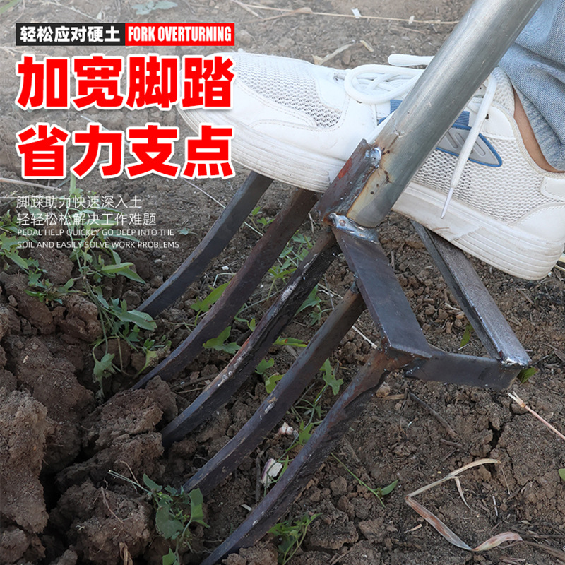 Оптовый инструмент для рыхления почвы, сельскохозяйственная вилка для выкапывания лука, имбиря и чеснока, четырехзубая интегрированная вилка из высокопрочной марганцевой стали.