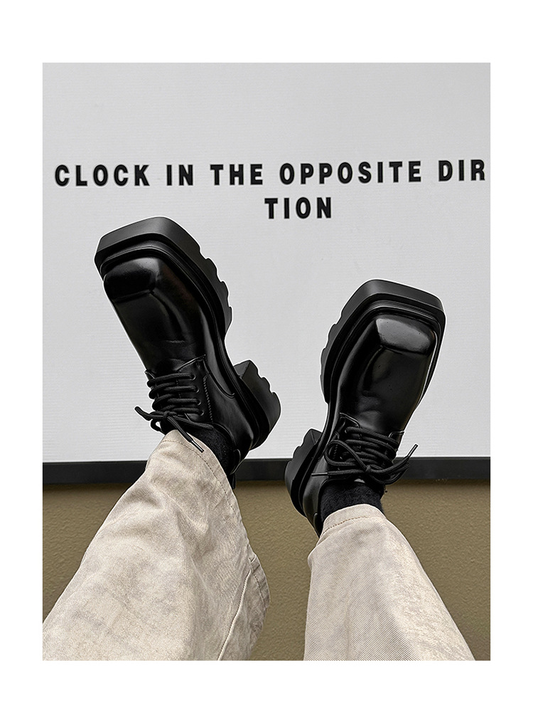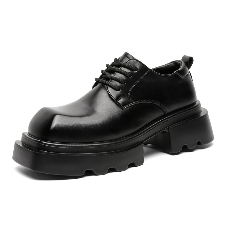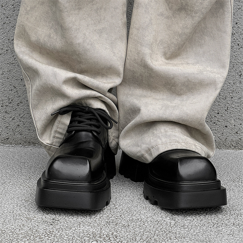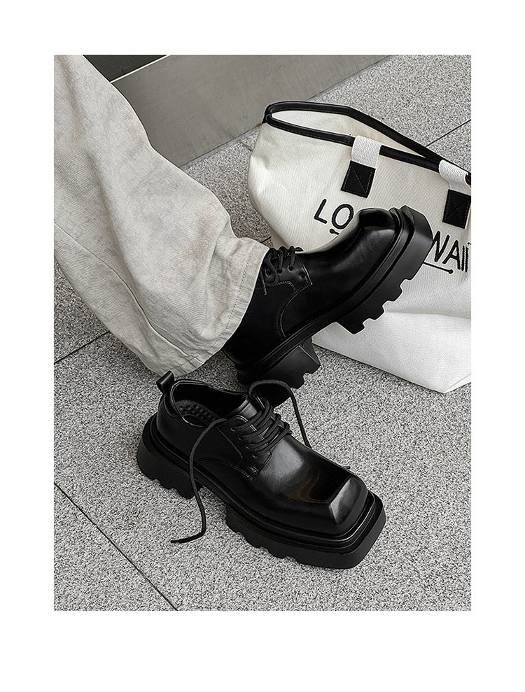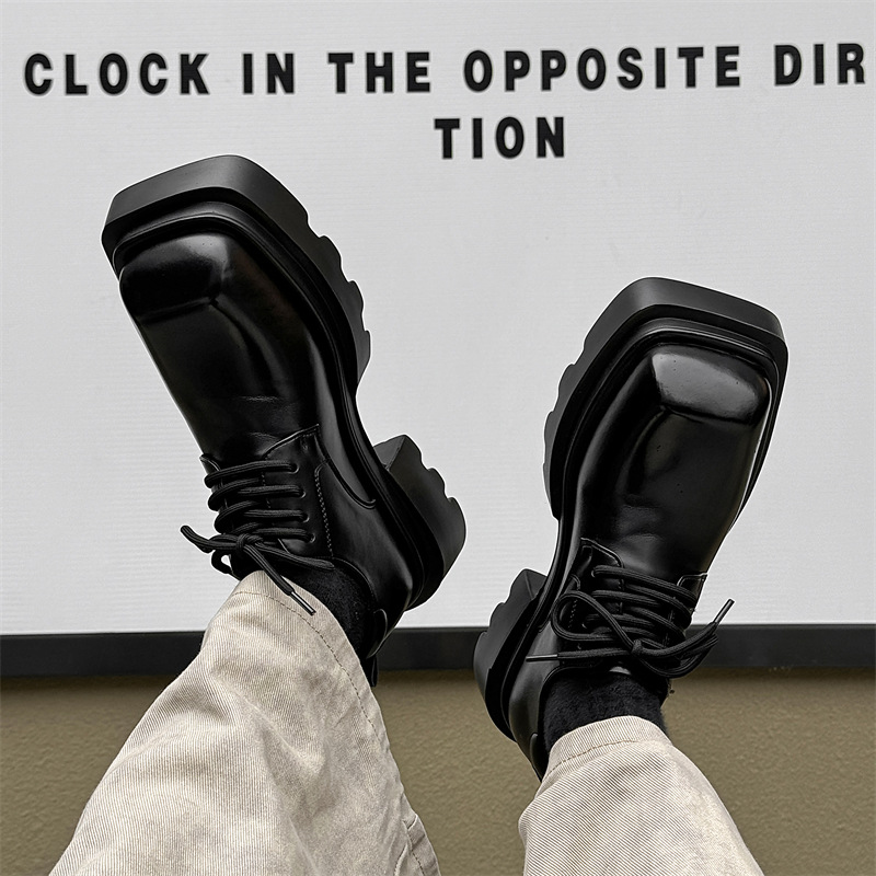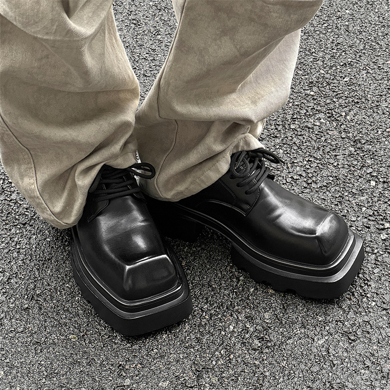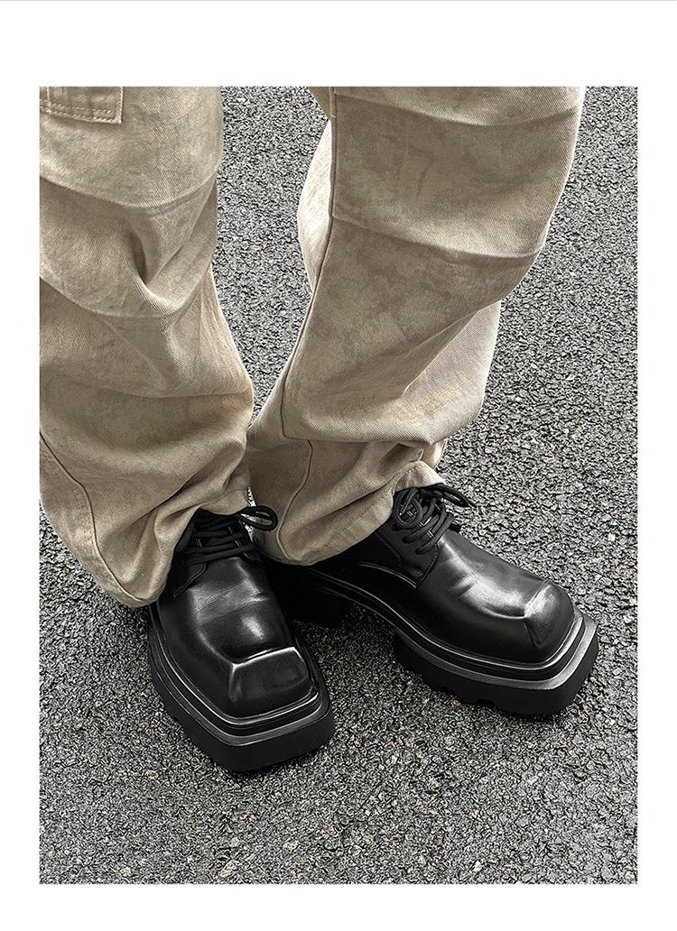 Высокие уличные кожаные туфли нишевые туфли дерби новые квадратные головы и толстые подошвы для волос стилисты повседневные туфли 3131-J