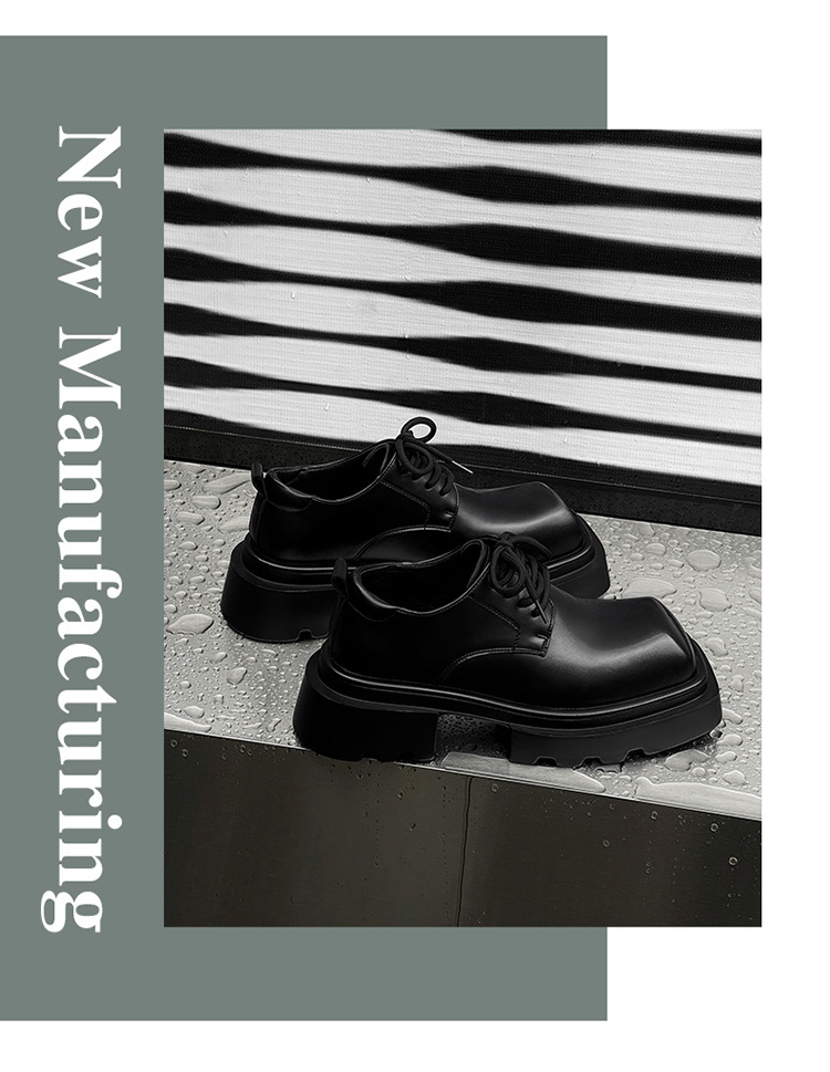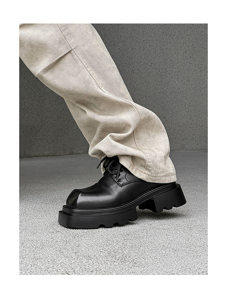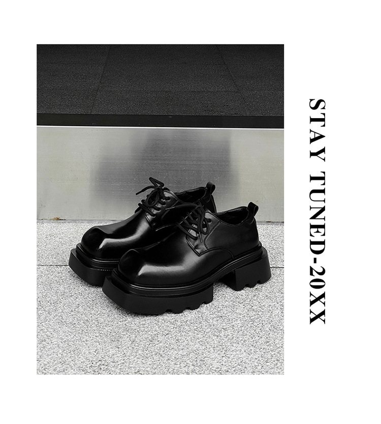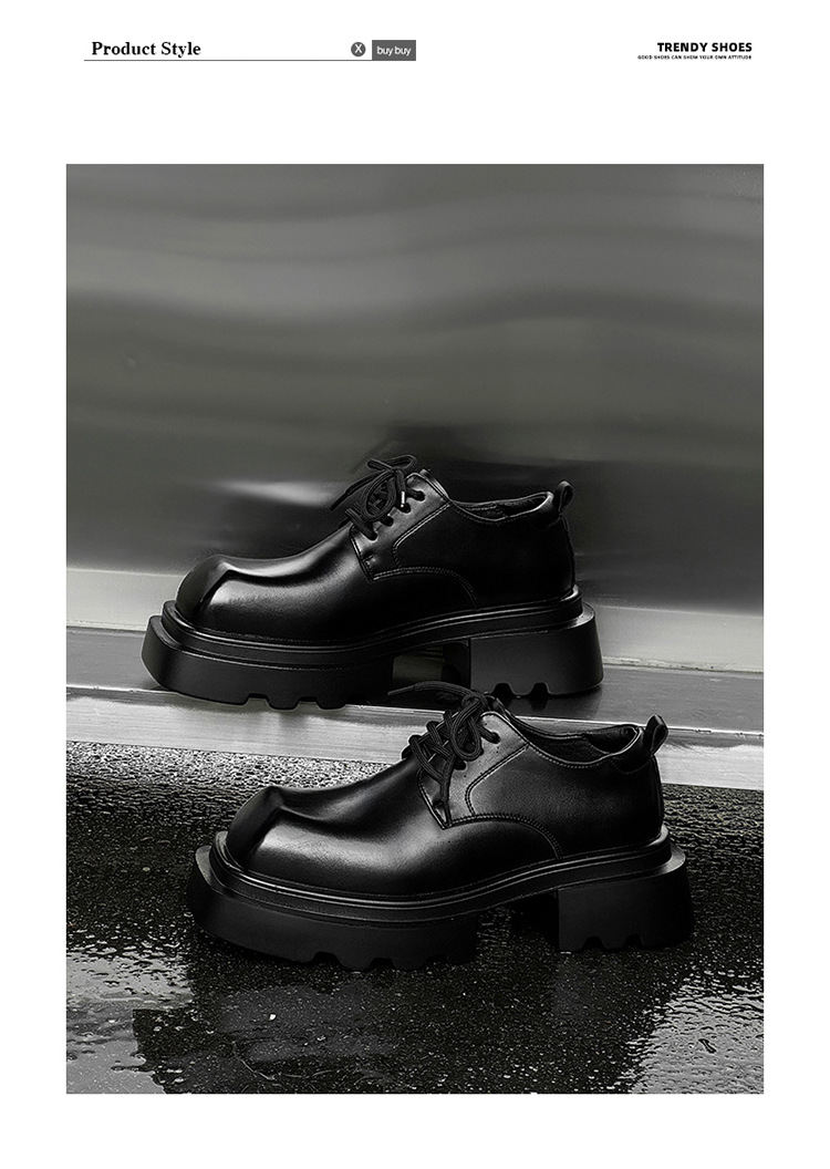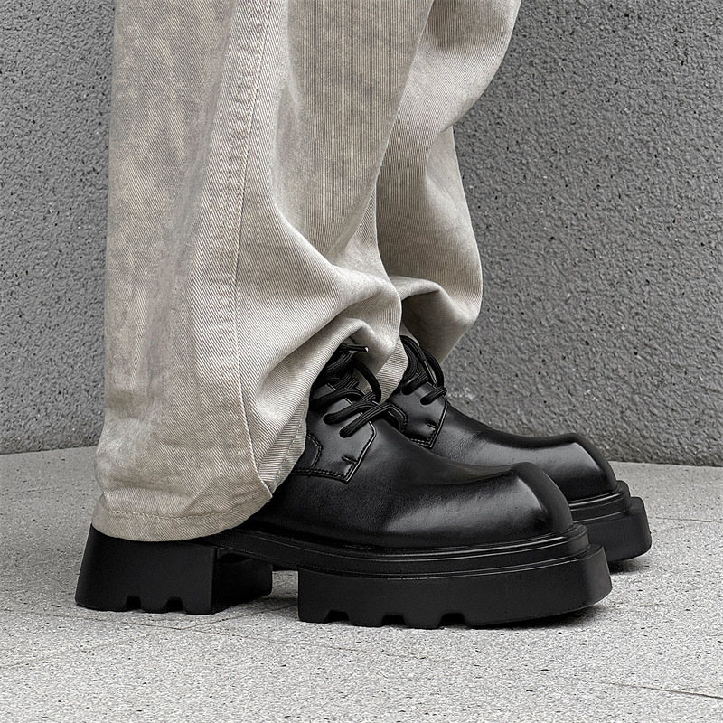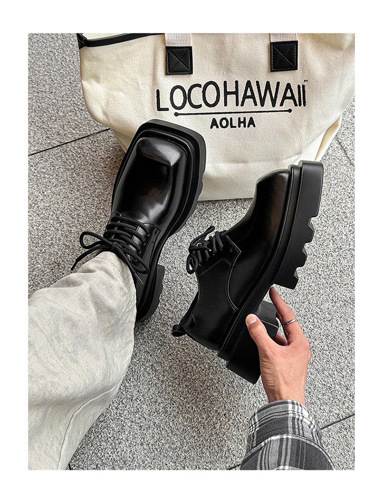 Высокие уличные кожаные туфли нишевые туфли дерби новые квадратные головы и толстые подошвы для волос стилисты повседневные туфли 3131-J