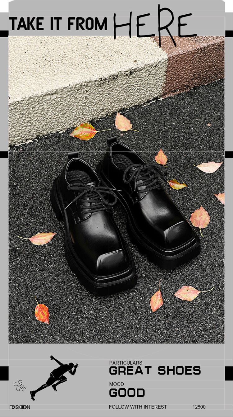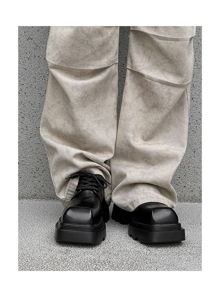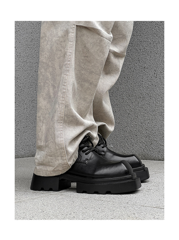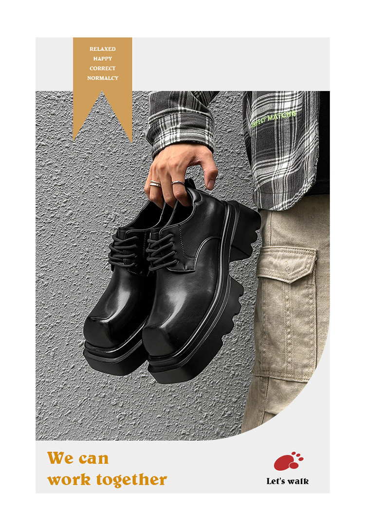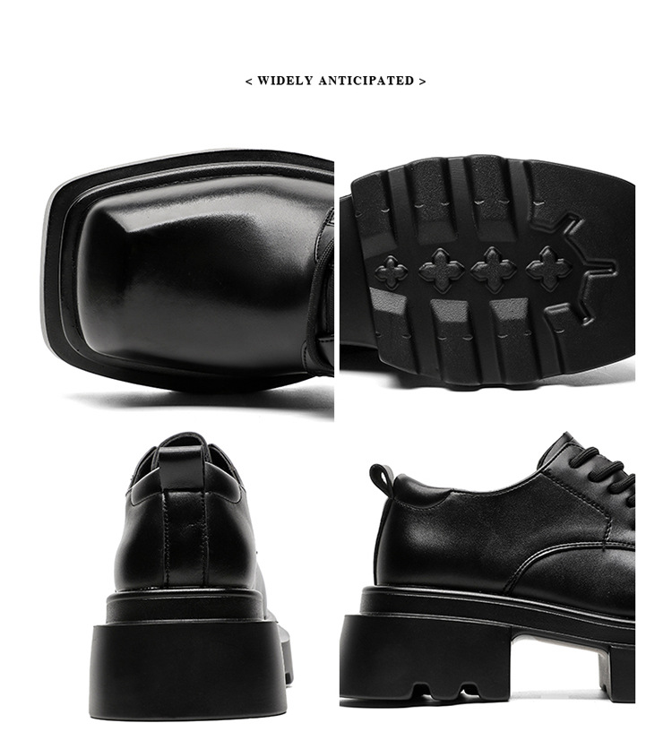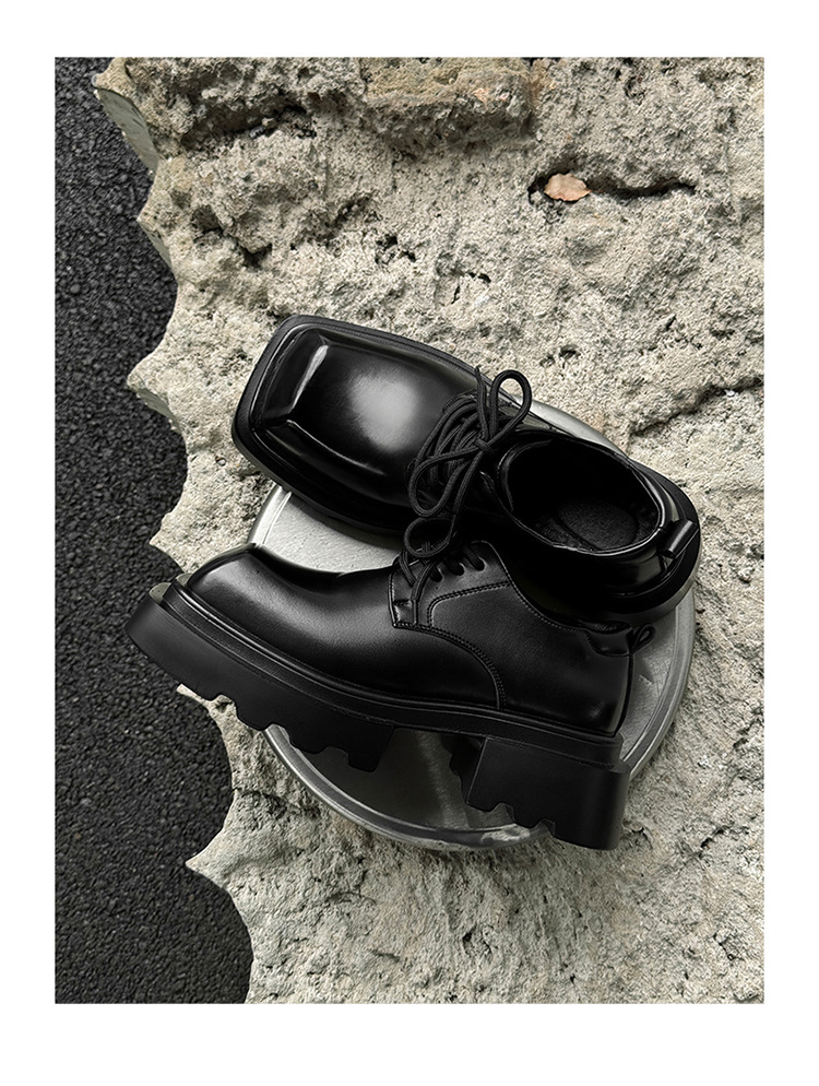 Высокие уличные кожаные туфли нишевые туфли дерби новые квадратные головы и толстые подошвы для волос стилисты повседневные туфли 3131-J