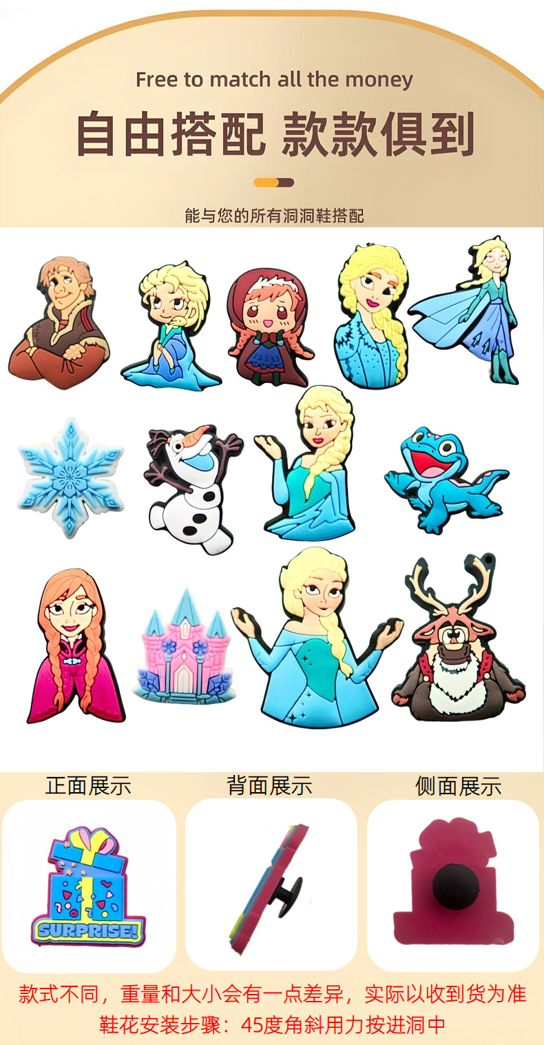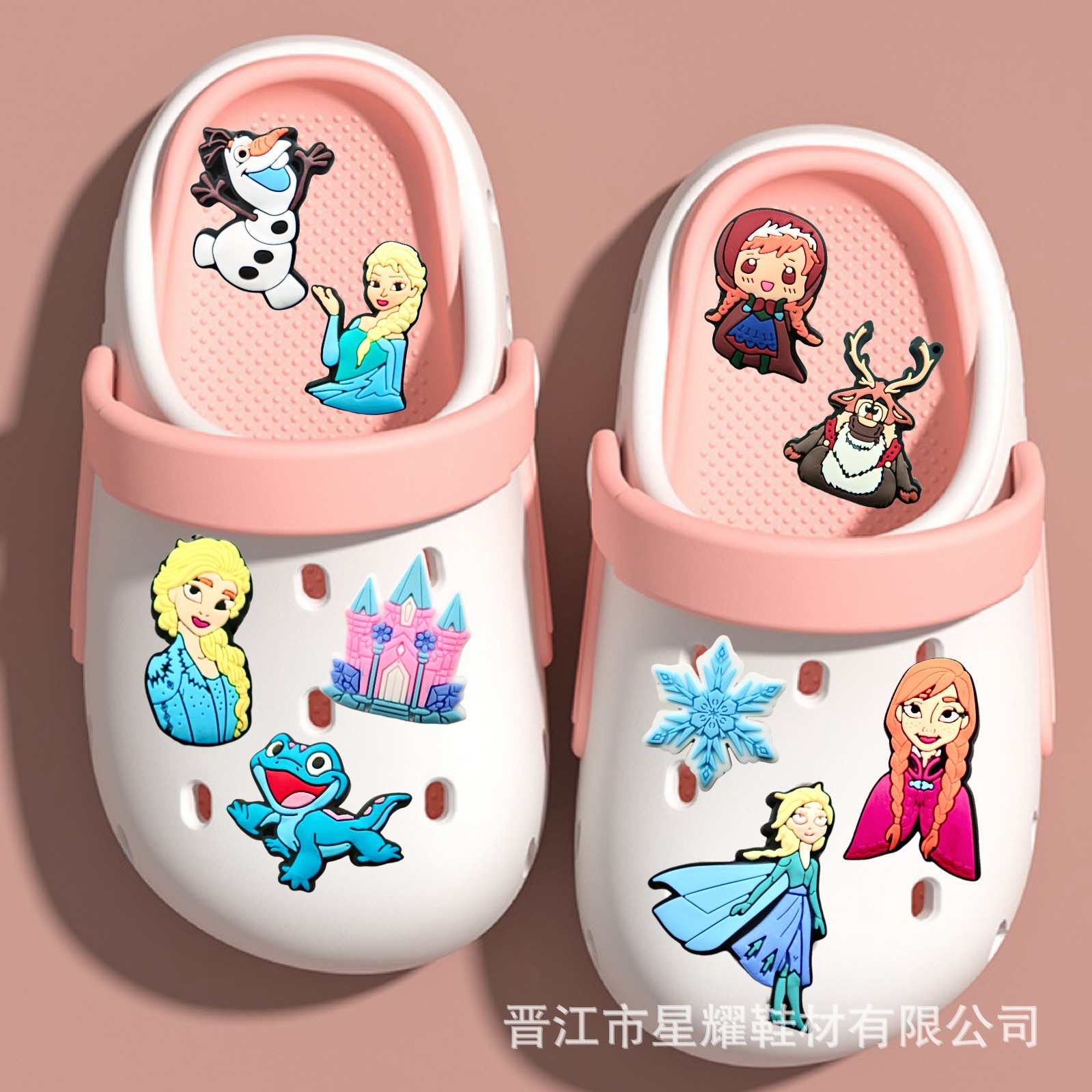 Аксессуары для обуви из ПВХ «Принцесса льда и снега», украшения для шнурков, креативные мультяшные аксессуары для сабо, оптом в наличии
