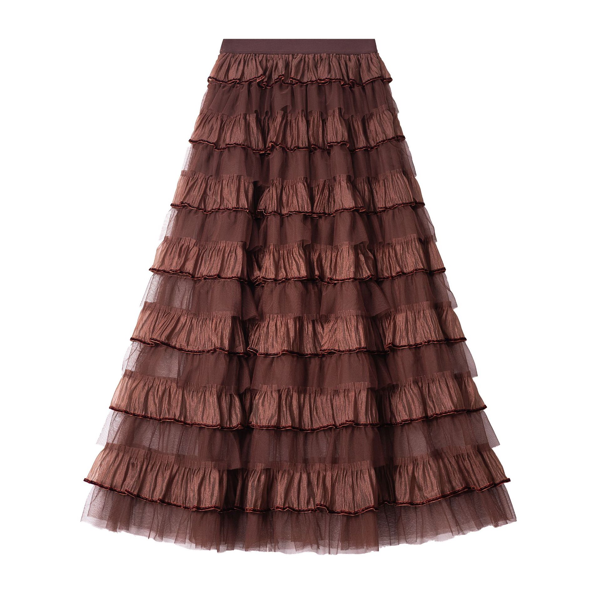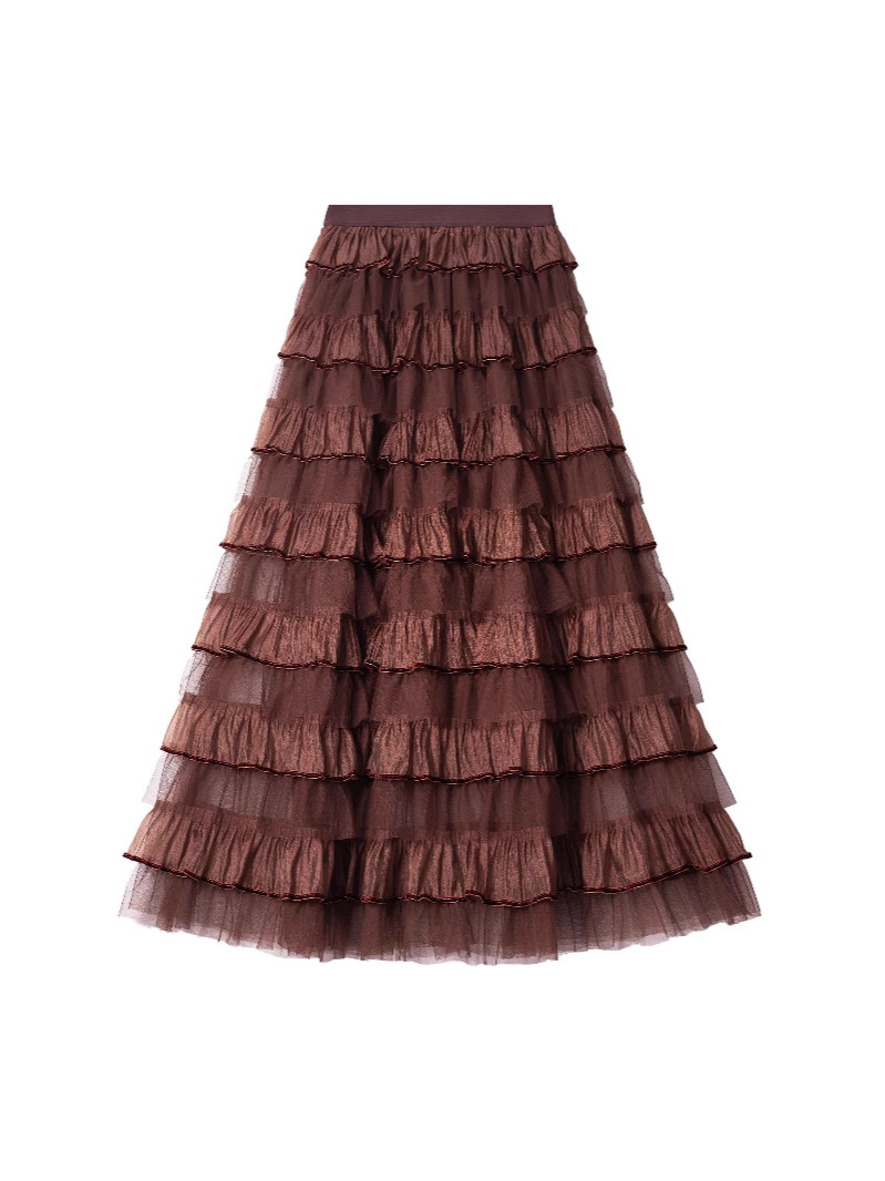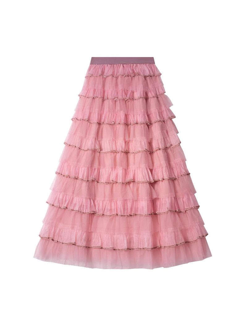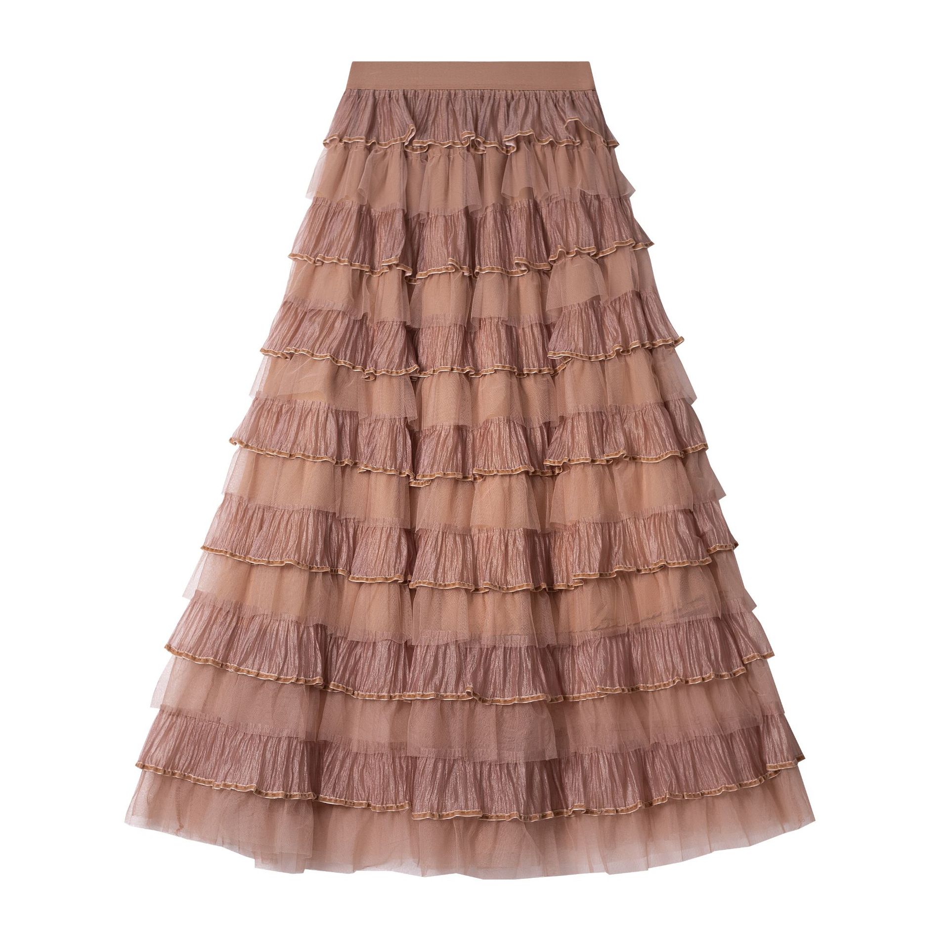 Многослойная сетчатая юбка для торта Свежая сладкая сетка длинная юбка осень-зима 2023 новая корейская версия контрастная юбка