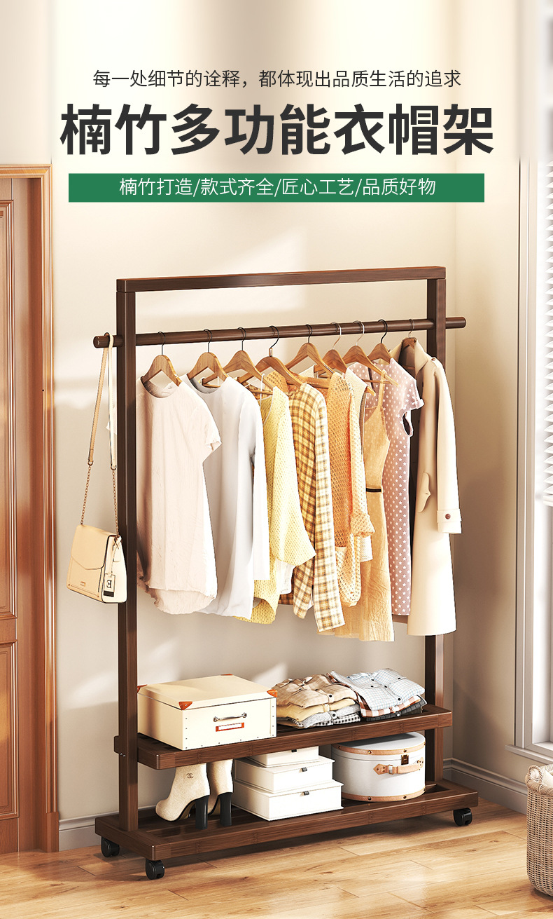 Спальня от пола до потолка вешалка крем ветер бамбуковый вешалка просто не занимает пространство 2024 новый мобильный общежитие