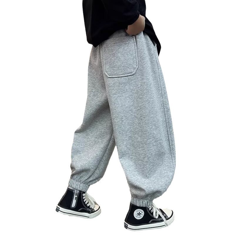 Прямые брюки для мальчиков Серые бархатные спортивные брюки осенне-зимний мальчик 2024 новые детские свободные широкие брюки