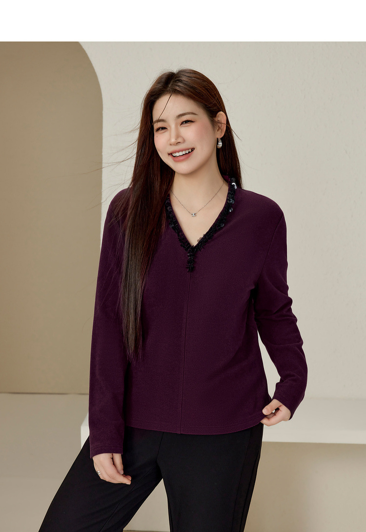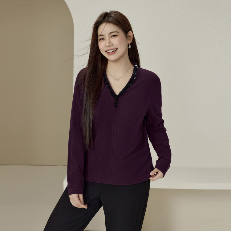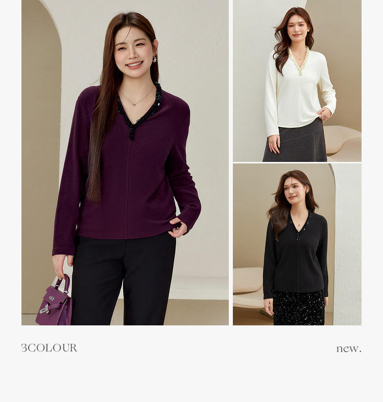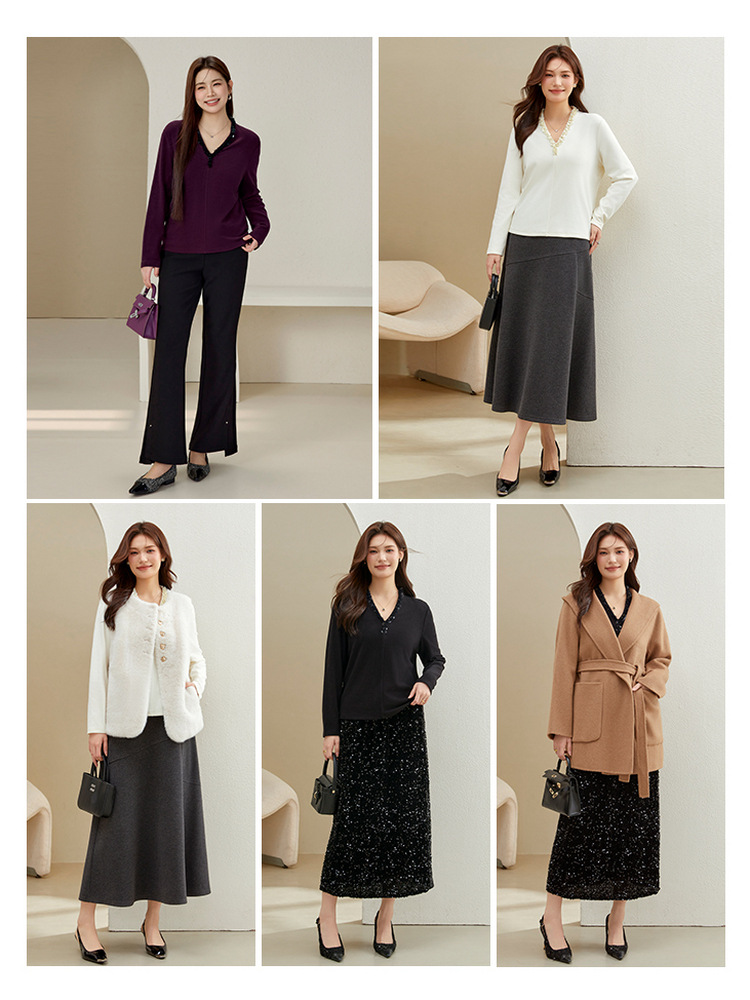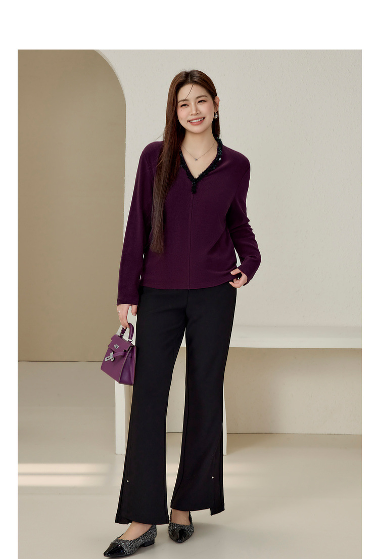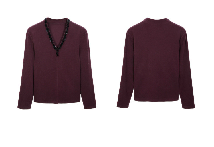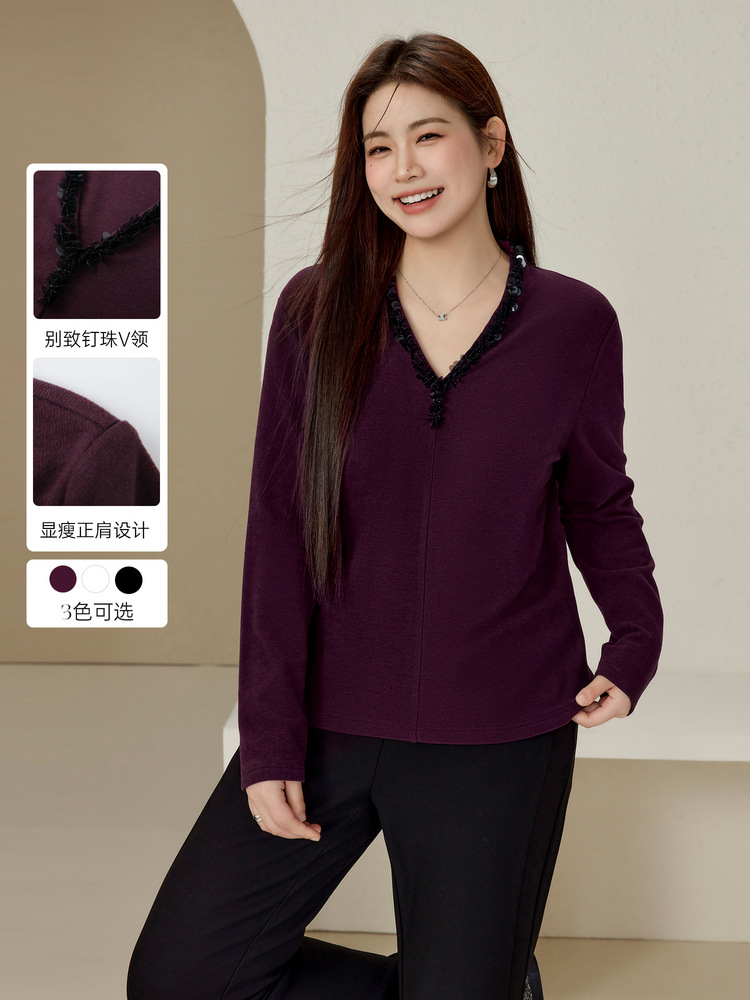 Funny Show большой размер женская легкая спелая ветреная бисерная V-образная шикарная модная дикая вязаная толстая мм2024 зимняя новая