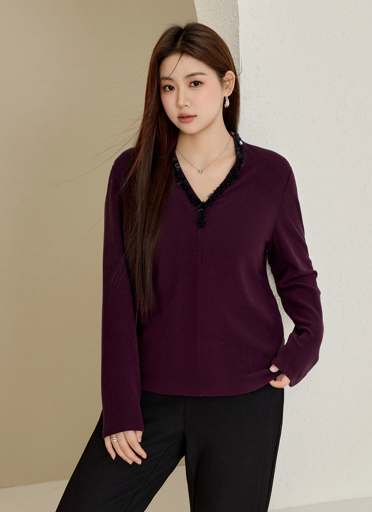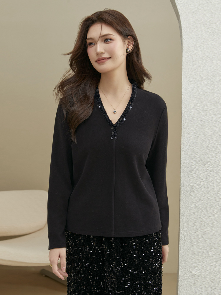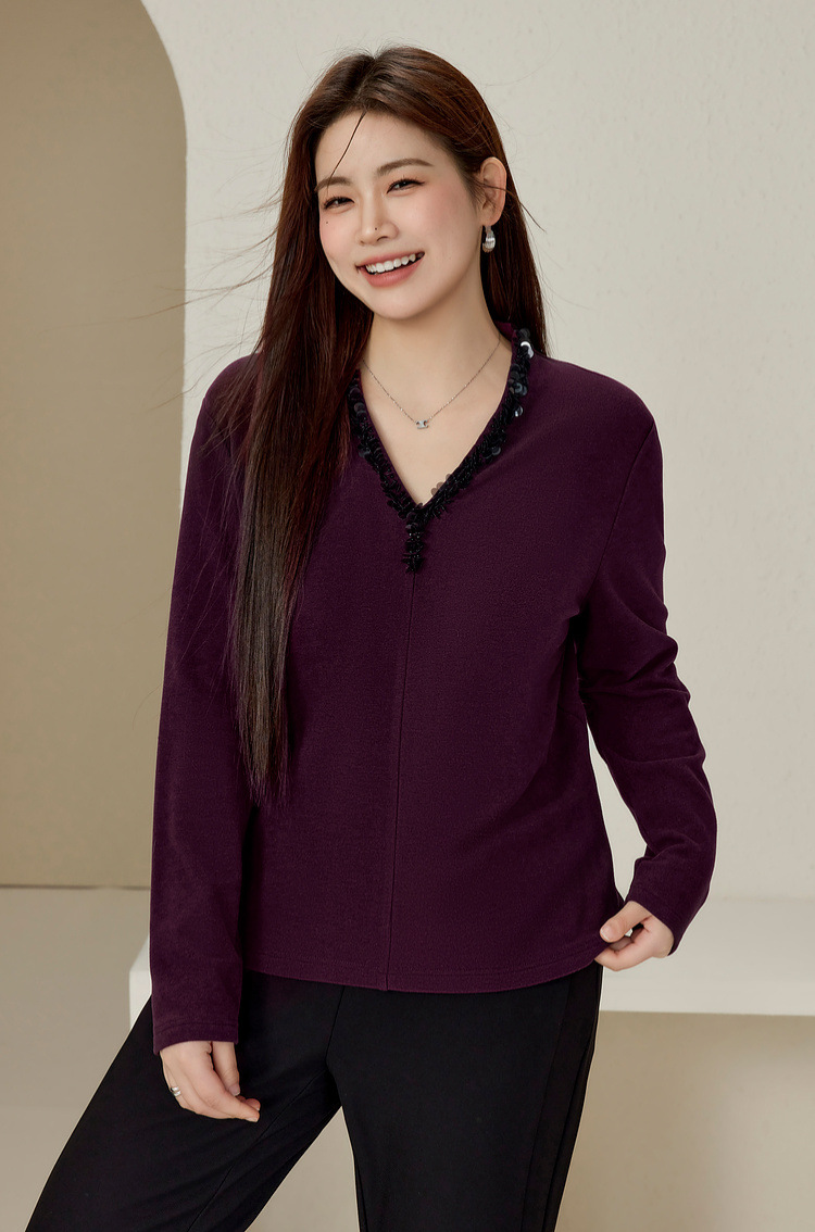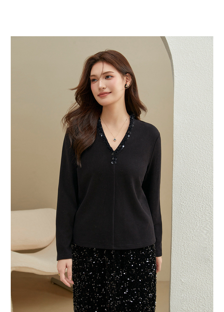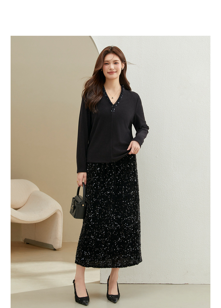 Funny Show большой размер женская легкая спелая ветреная бисерная V-образная шикарная модная дикая вязаная толстая мм2024 зимняя новая