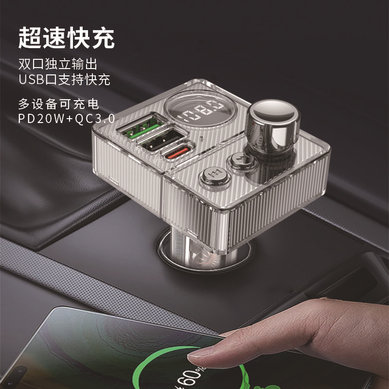 Новый автомобильный Bluetooth mp3 громкой связи FM-передатчик Car музыкальный плеер QC3.0 быстрая зарядка PD20W прозрачный
