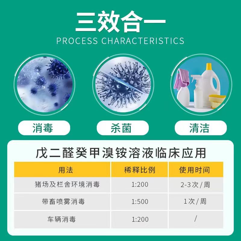 Ветеринарный дезинфицирующий препарат для ферм, специальный дезинфицирующий препарат для свиноферм и курятников, дезинфекция при свином лихорадке, раствор глутаралдегида декилметиламмониобромида