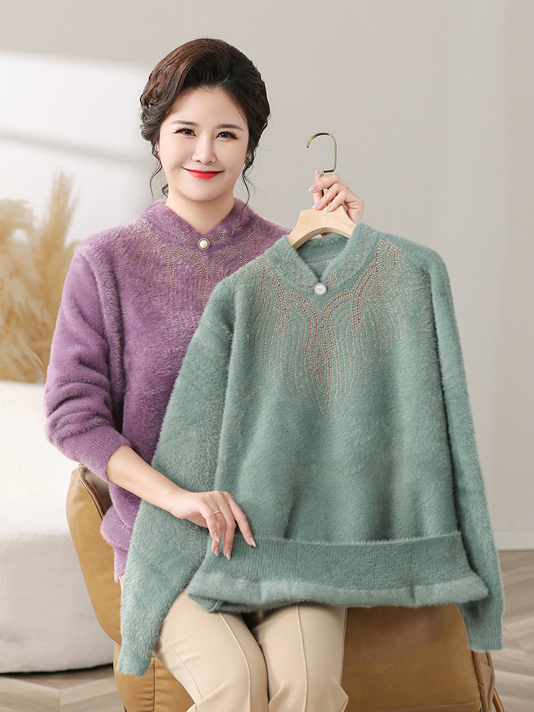 Мама осенний и зимний норковый бархатный свитер утолщенный, чтобы согреться и носить одежду