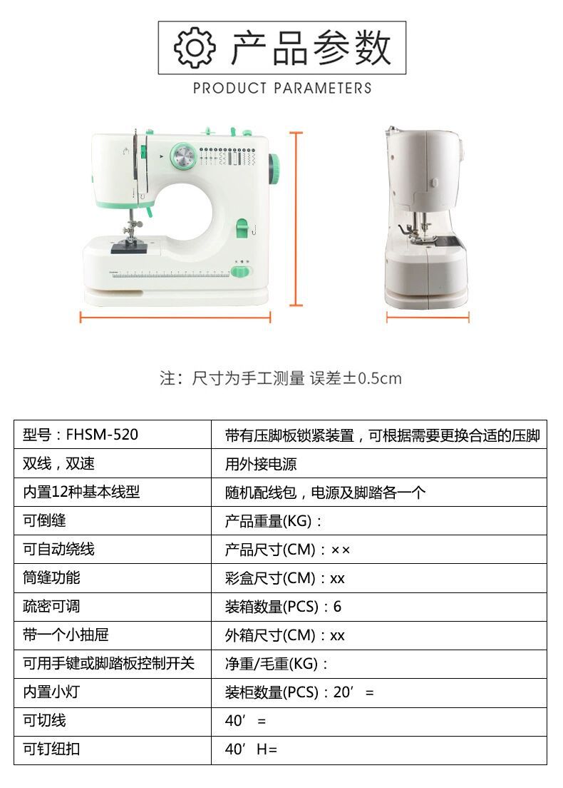 520缝纫机亚马逊电商家用缝纫机迷你多功能锁边锁扣眼吃厚电动,默认拍下是标配。
