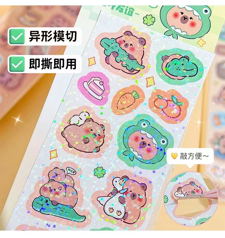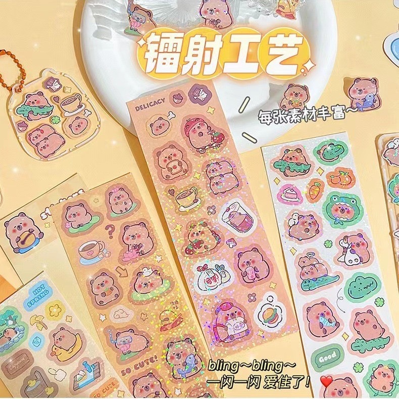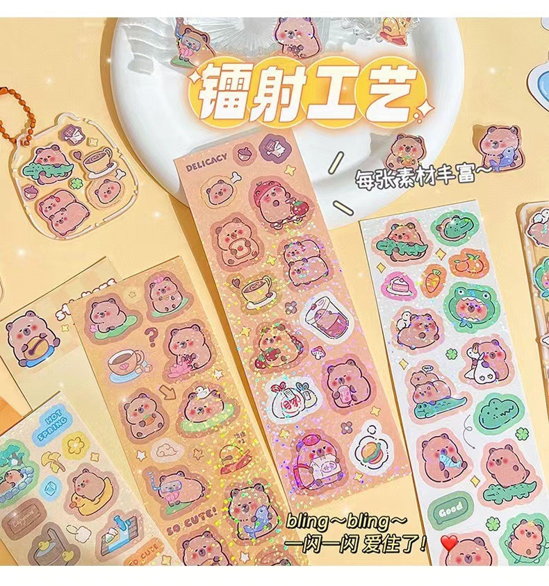 Наклейки Капибала для девочек и детей, набор наклеек Гука, ручная работа, маленькие наклейки-наборы для творчества с пандами, наградные наклейки из ПЭТ