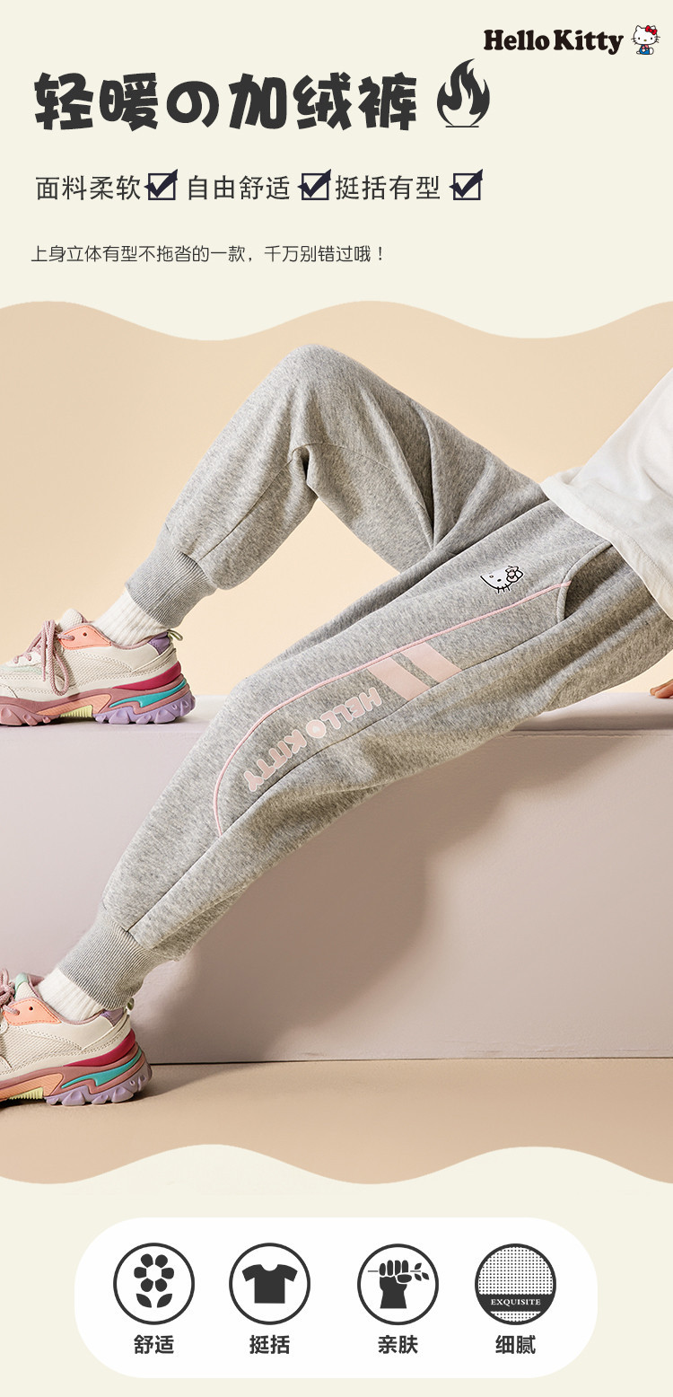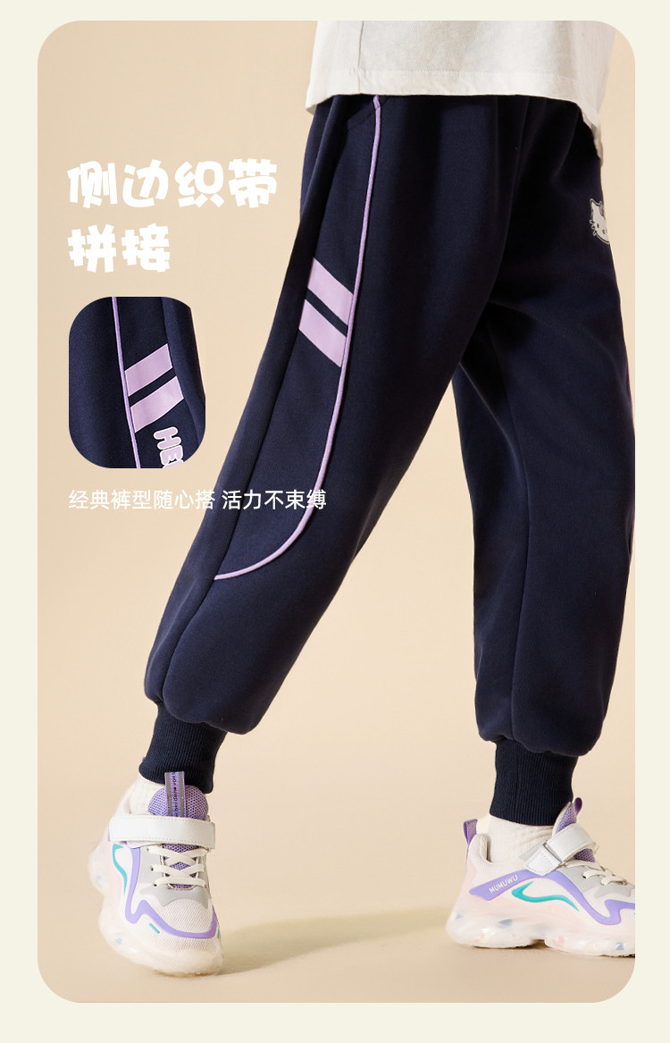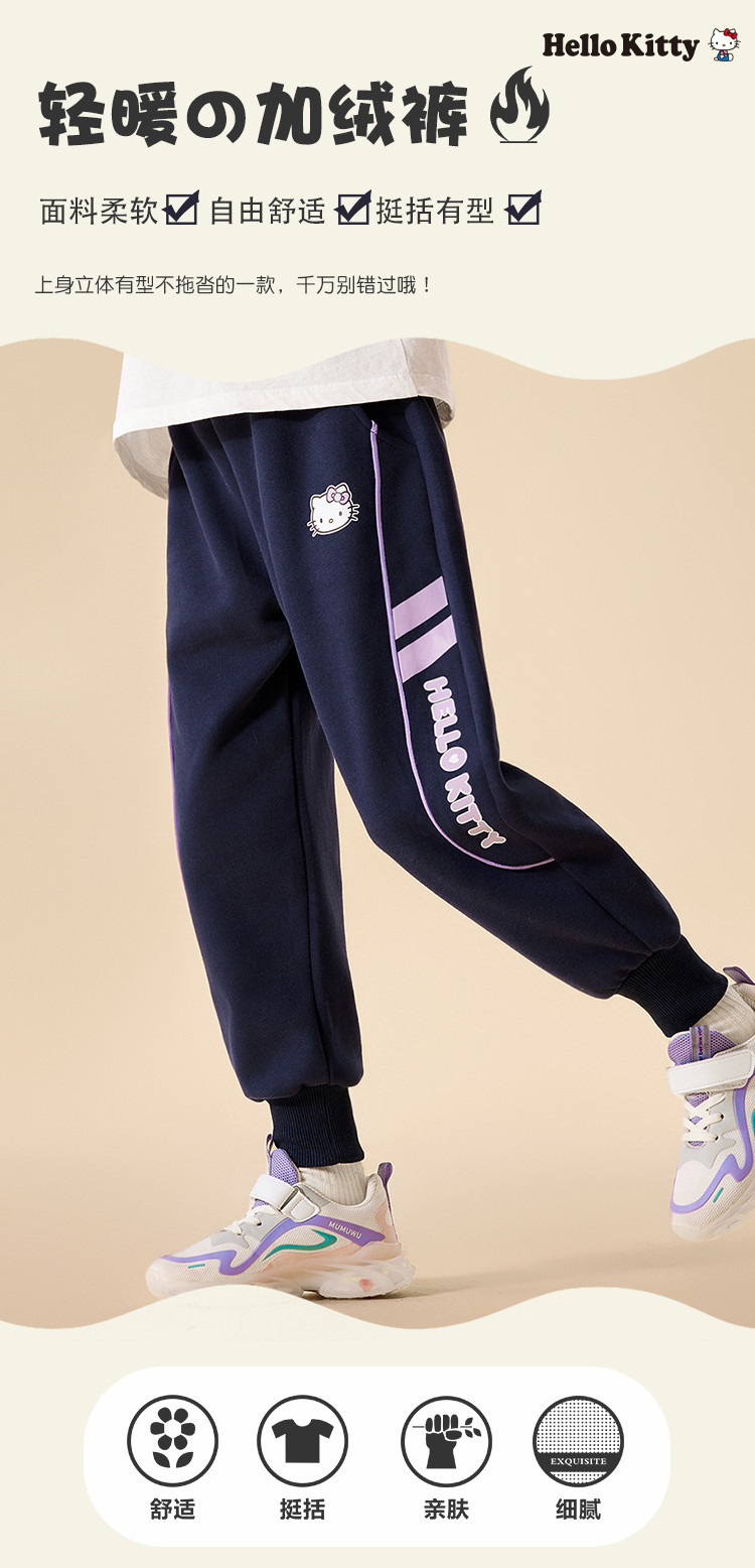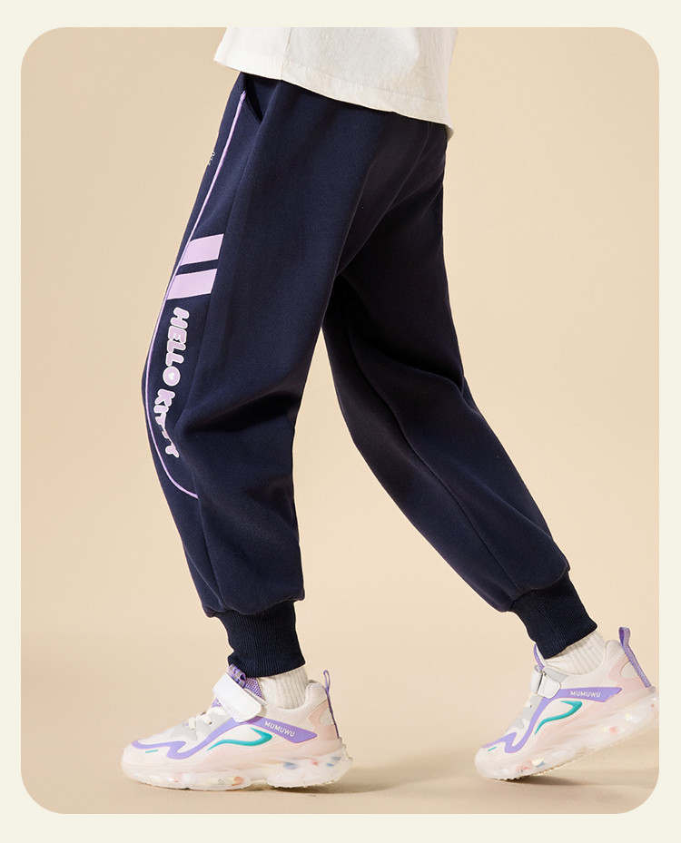 HelloKitty девушки осенью и зимой бархатные брюки 2024 новый стиль детской одежды для комфорта и тепла брюки