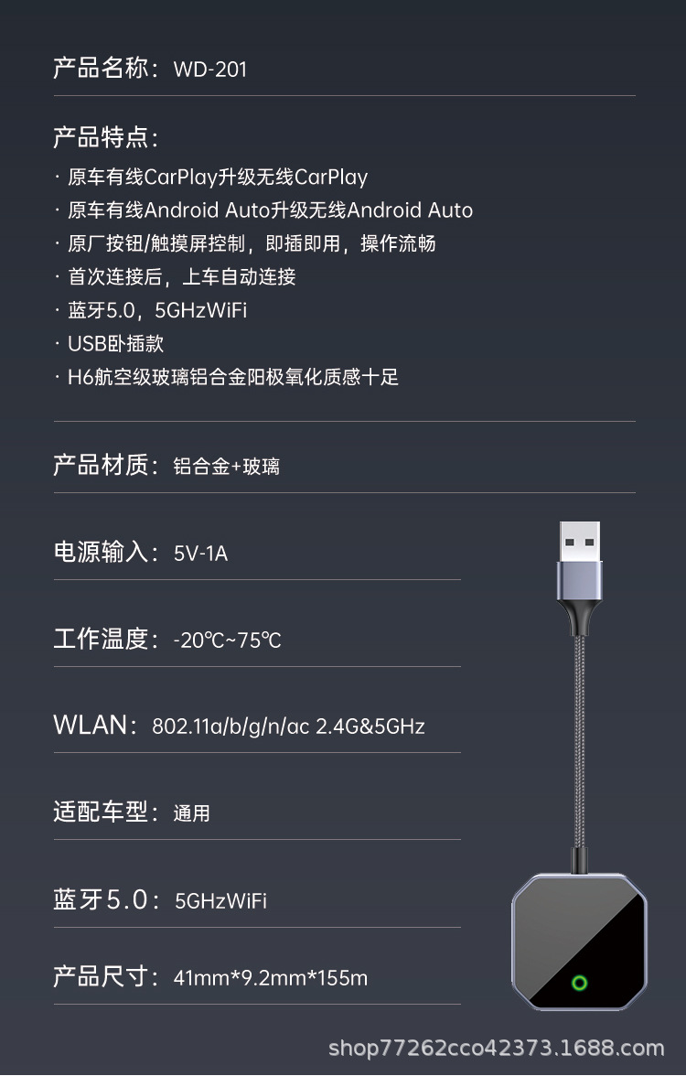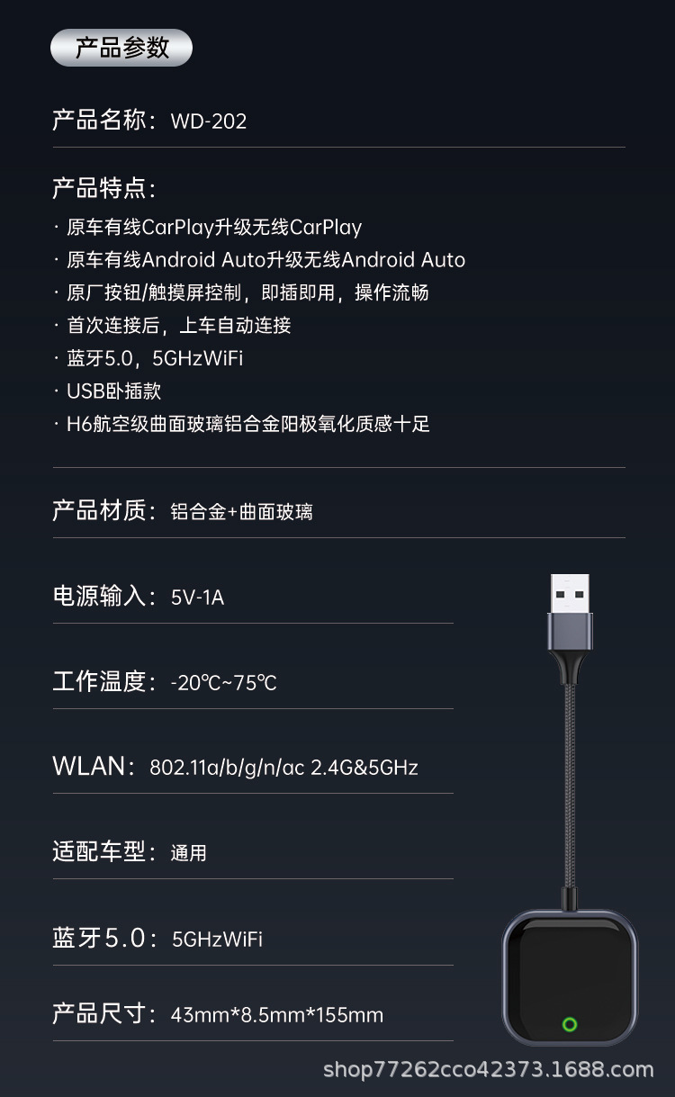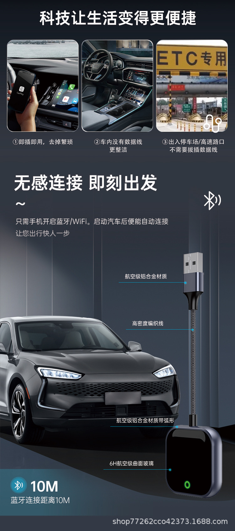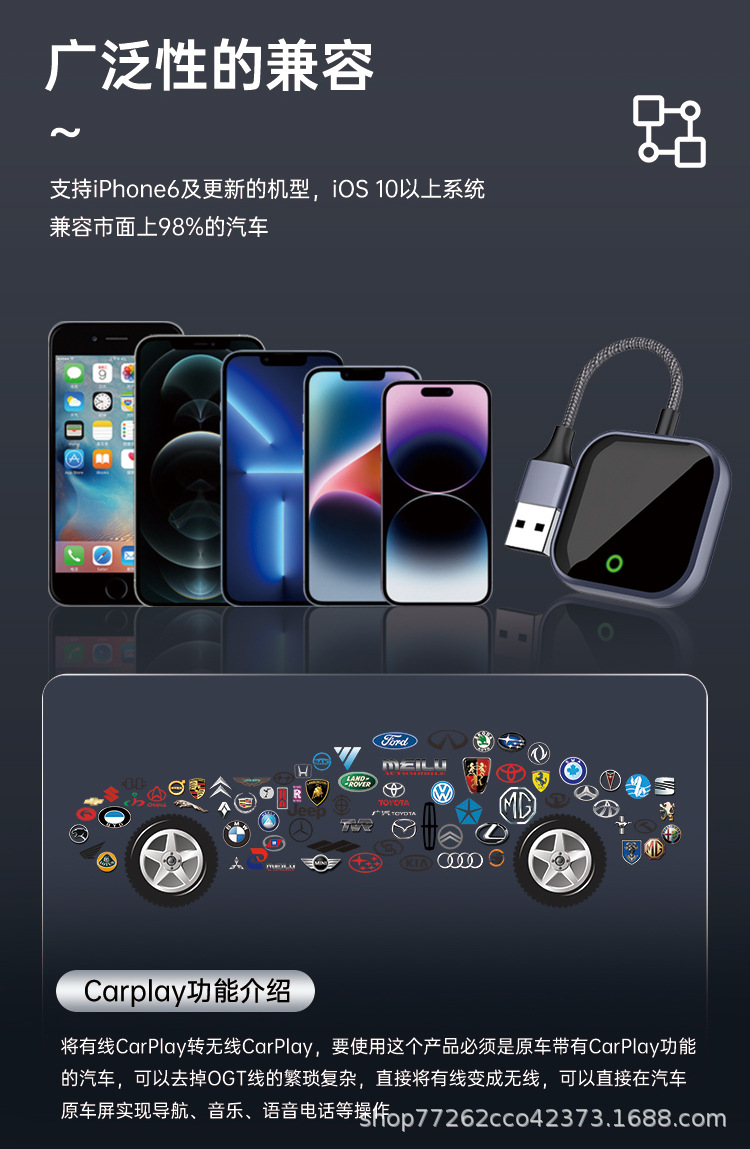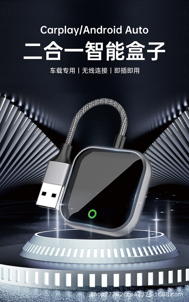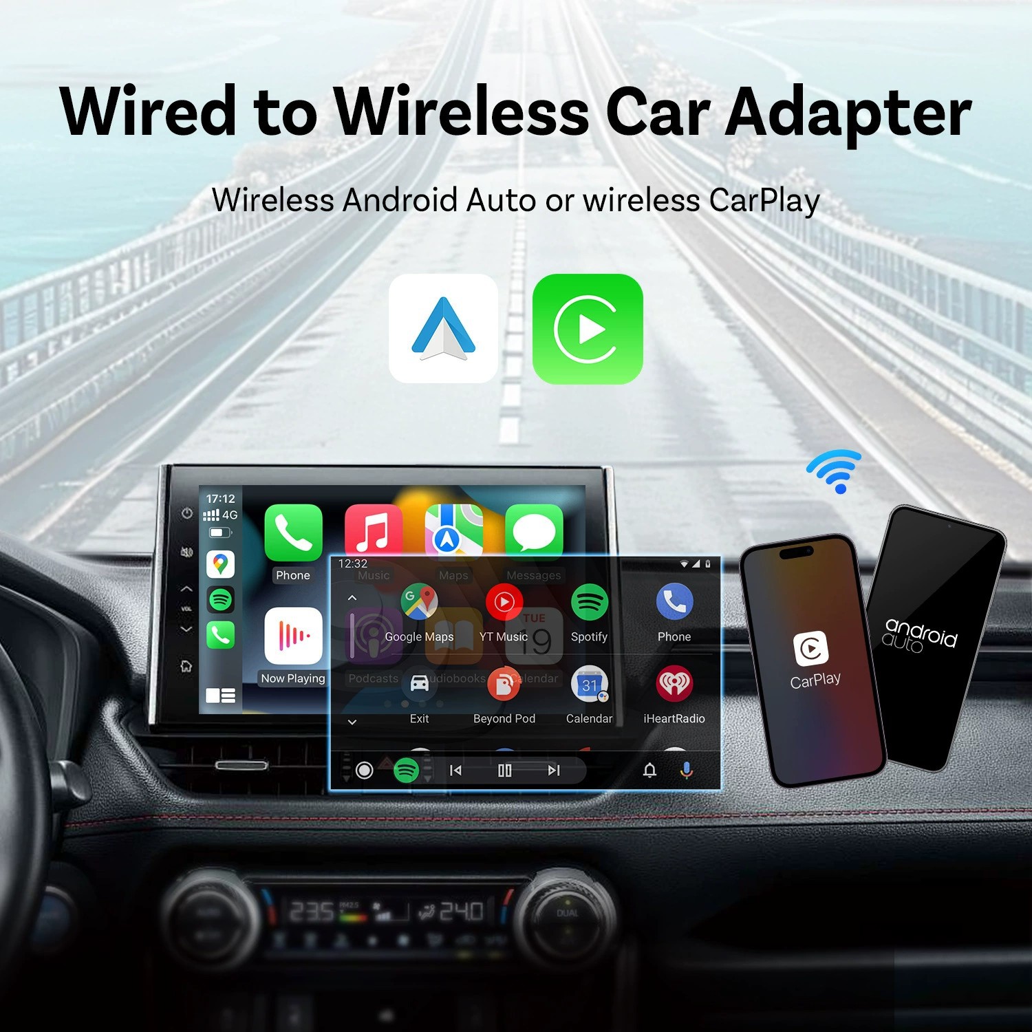Беспроводной конвертер CarPlay 2-в-1 для умных автомобилей с полным подключением к сети и проводным Android Auto