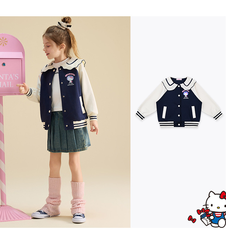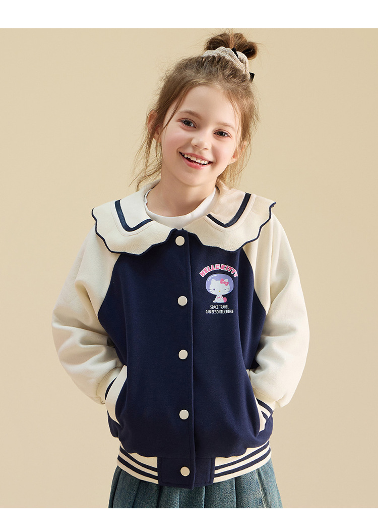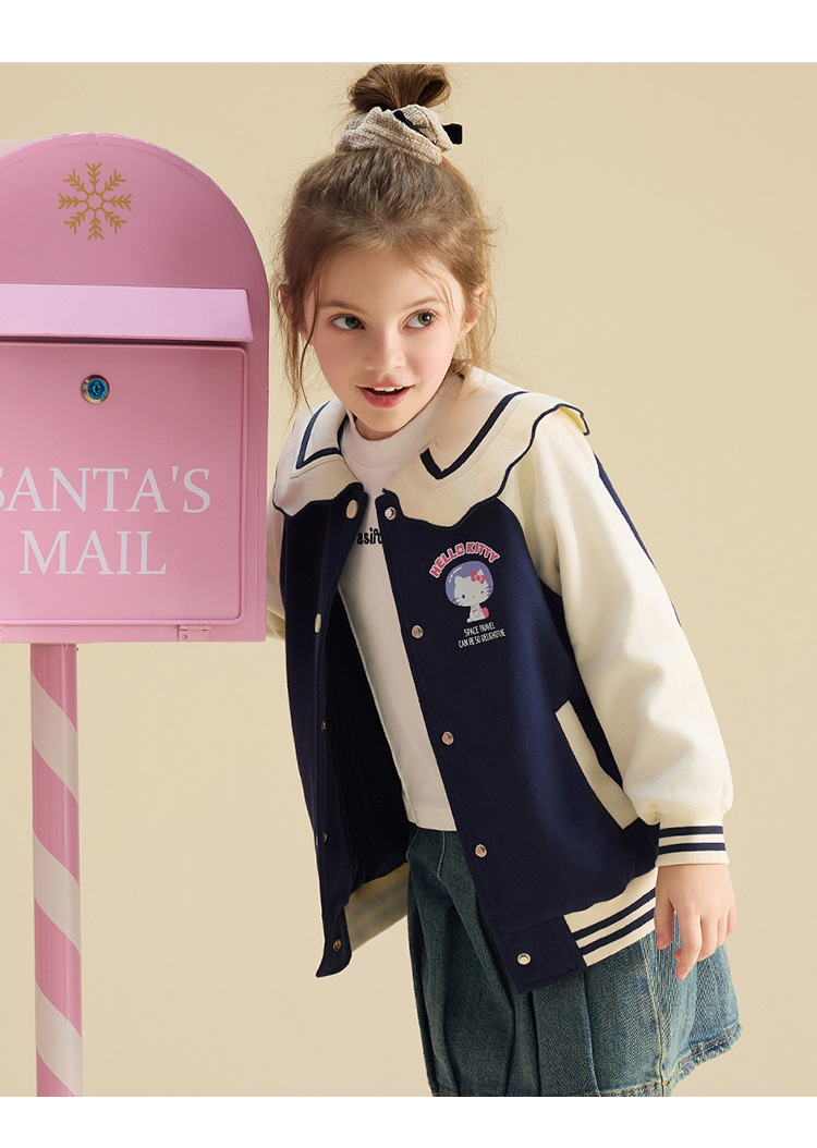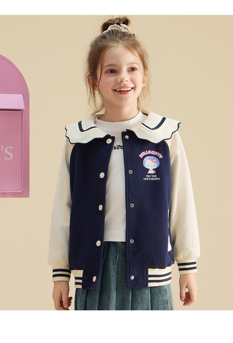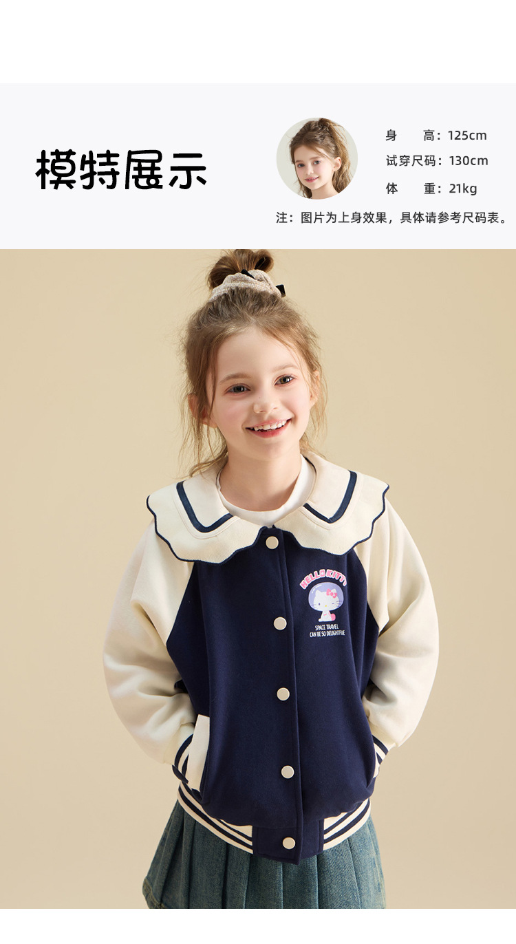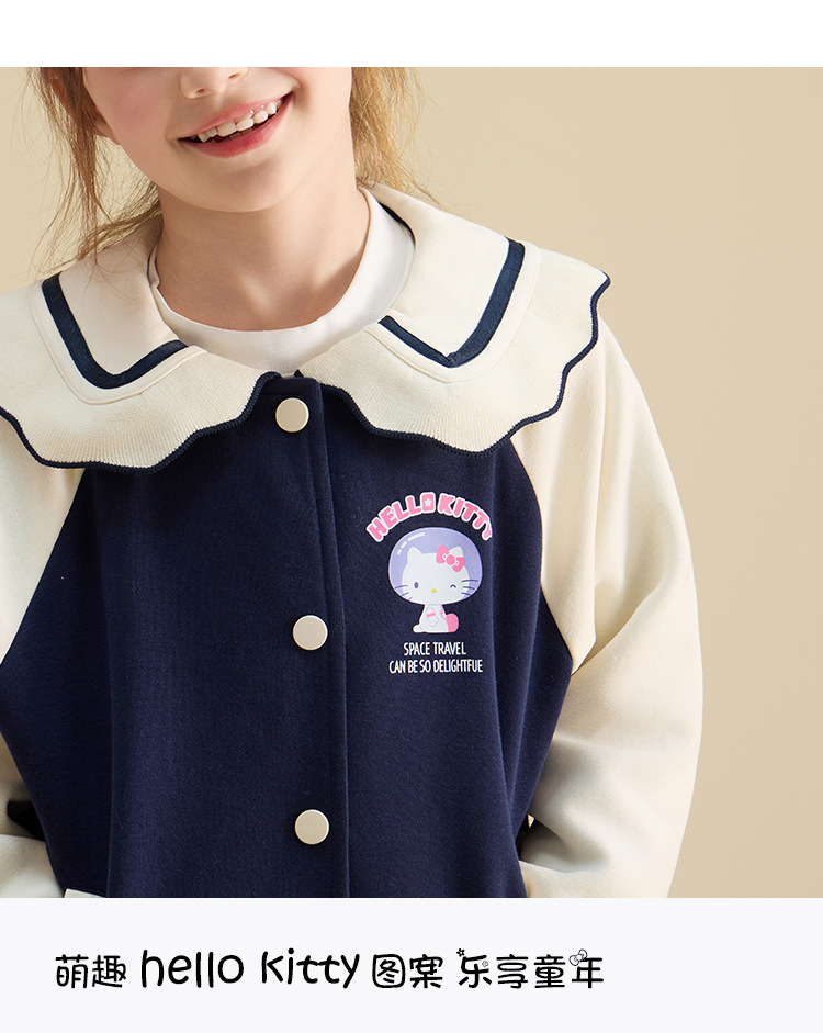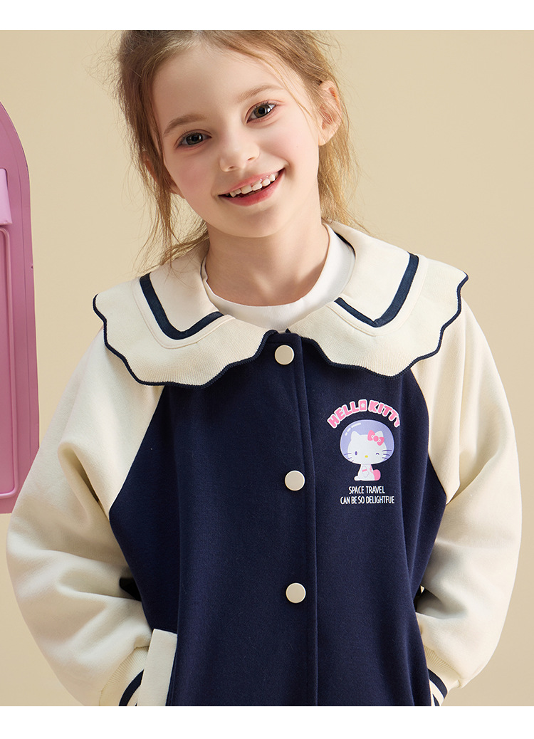 HelloKitty Hello Kitty девушка осень пальто 2024 новая маленькая девочка большой военно-морской спорт большой детской одежды