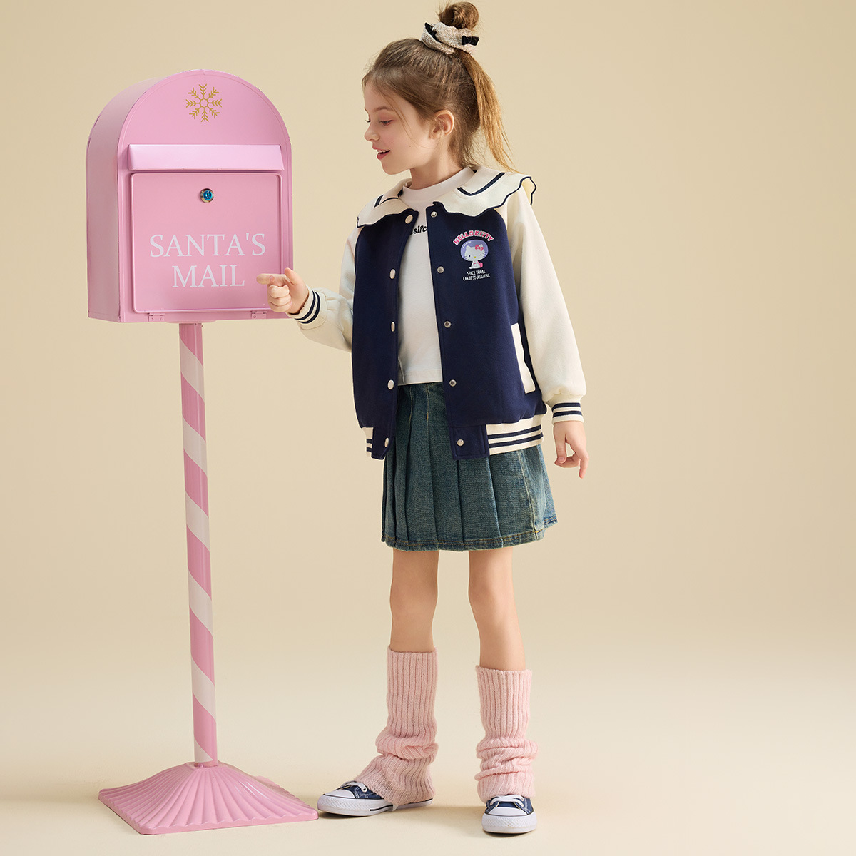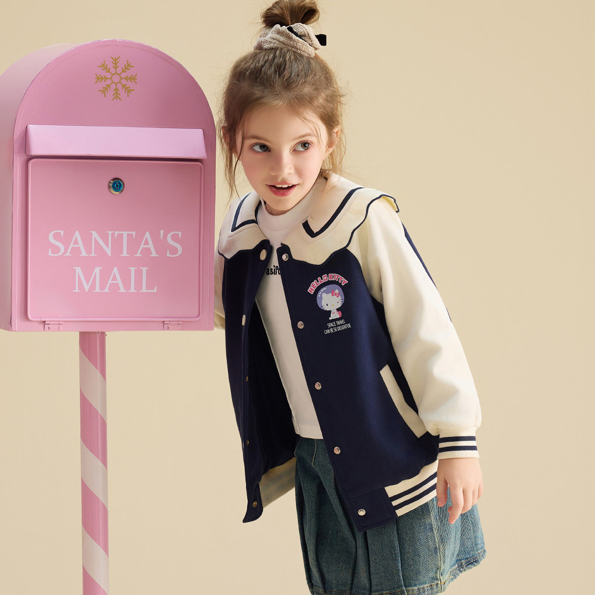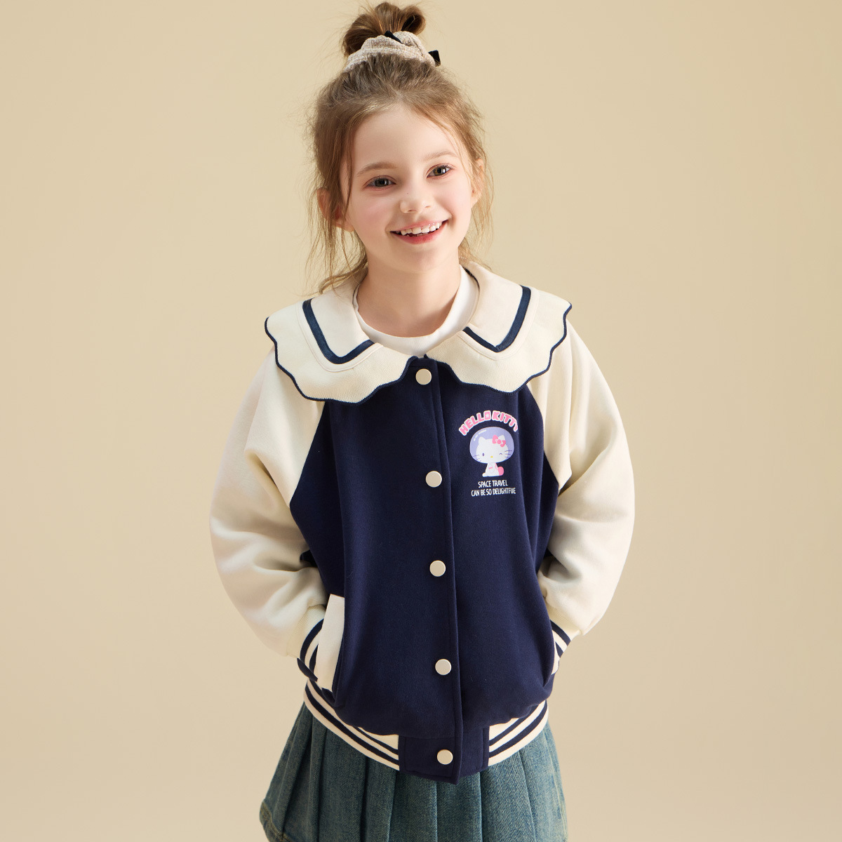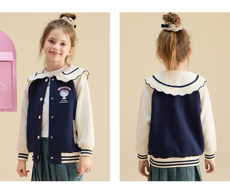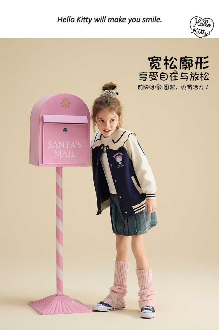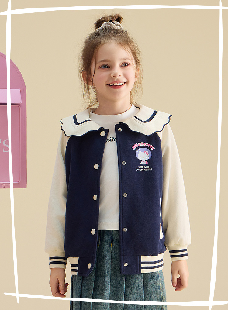HelloKitty Hello Kitty девушка осень пальто 2024 новая маленькая девочка большой военно-морской спорт большой детской одежды