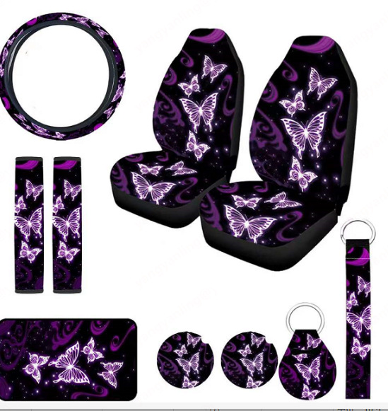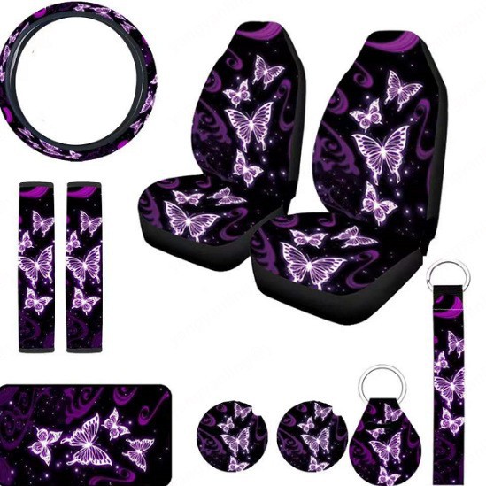 Автомобиль трансграничный универсальный принт фиолетовая бабочка переднее сиденье сиденье 10 комплектов Amazon плюс гаджеты