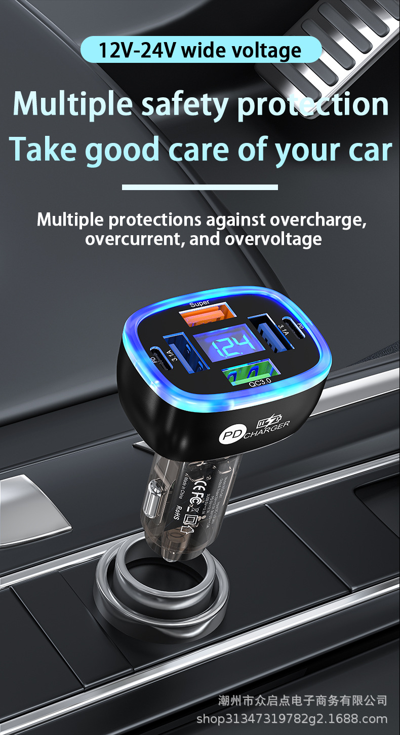 Новая автомобильная зарядка, цифровая зарядка, автомобильное зарядное устройство с шестью прикуривателем, многофункциональное интеллектуальное автомобильное зарядное устройство
