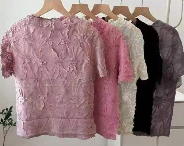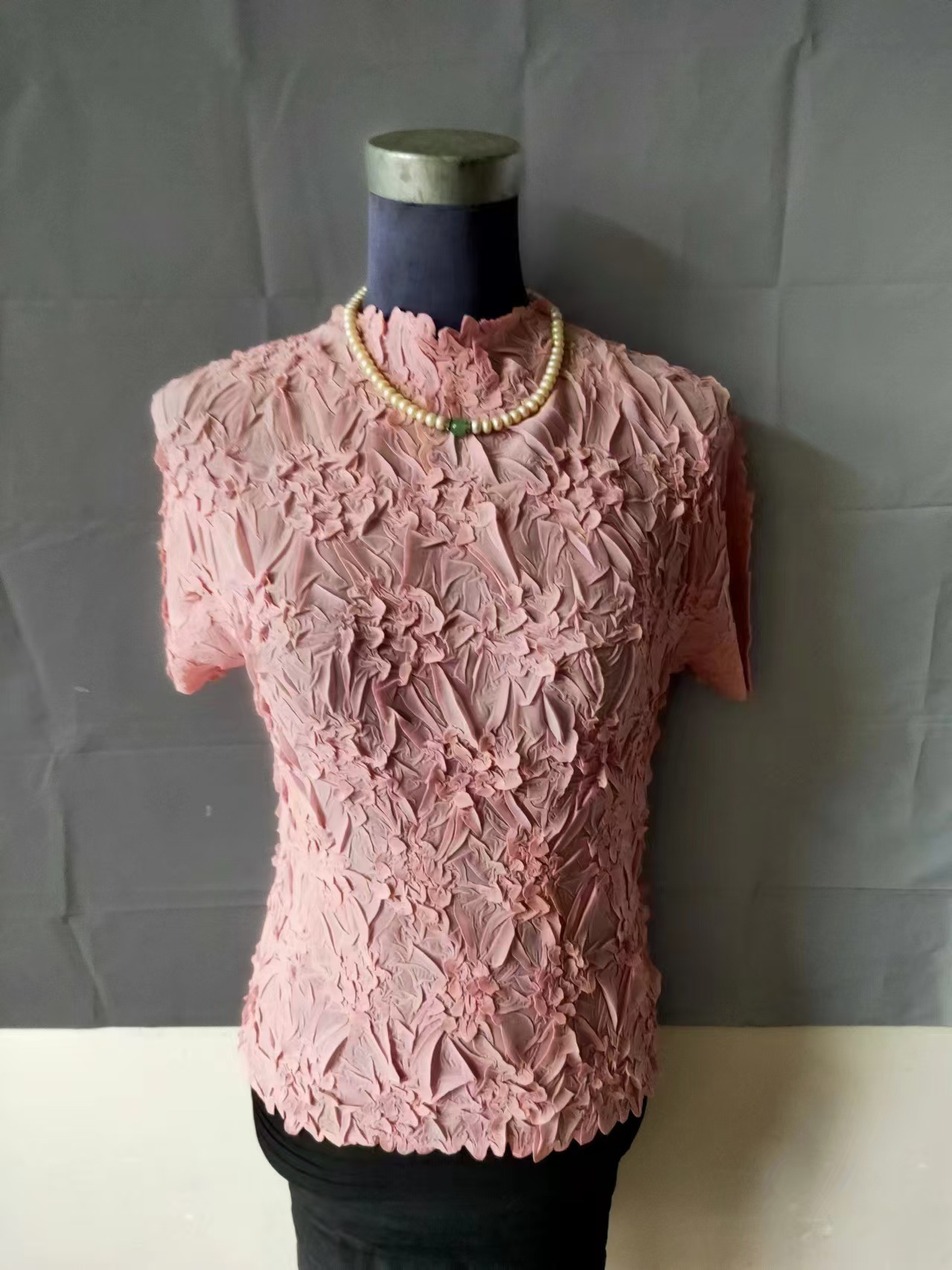 Производители напрямую поставляют тонкие и тонкие плиссированные футболки с цветами, женские дикие темпераментные складки, свободные и тонкие рубашки