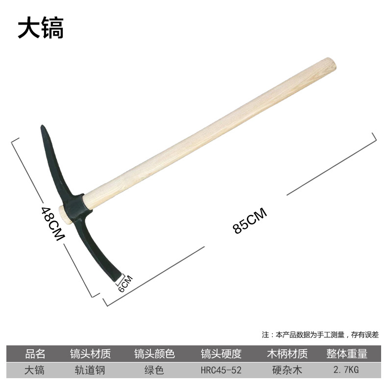 大镐:木柄85CM 镐头长48CM 发货镐头与柄分体