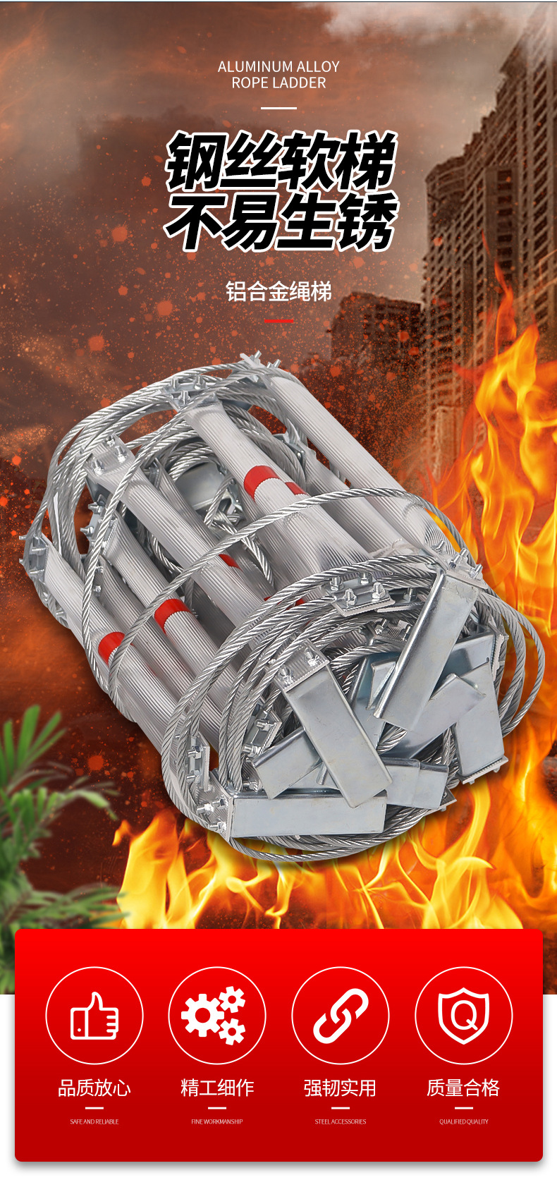 Алюминиевый стальной трос мягкая лестница огнестойкая и износостойкая пожарная спасательная лестница
