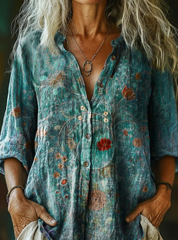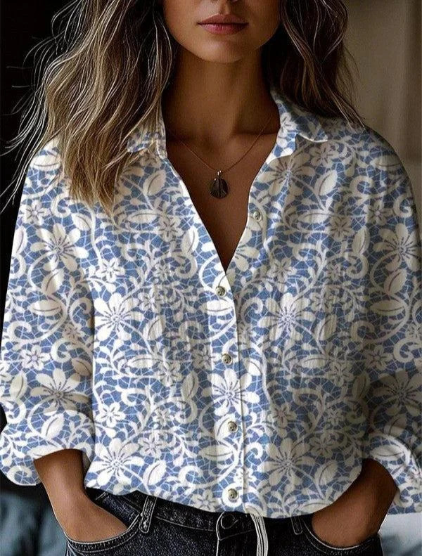Новая женская модная блузка с цветочным принтом и отложным воротником, с длинным рукавом, для трансграничной торговли на Amazon (3D цифровая печать)