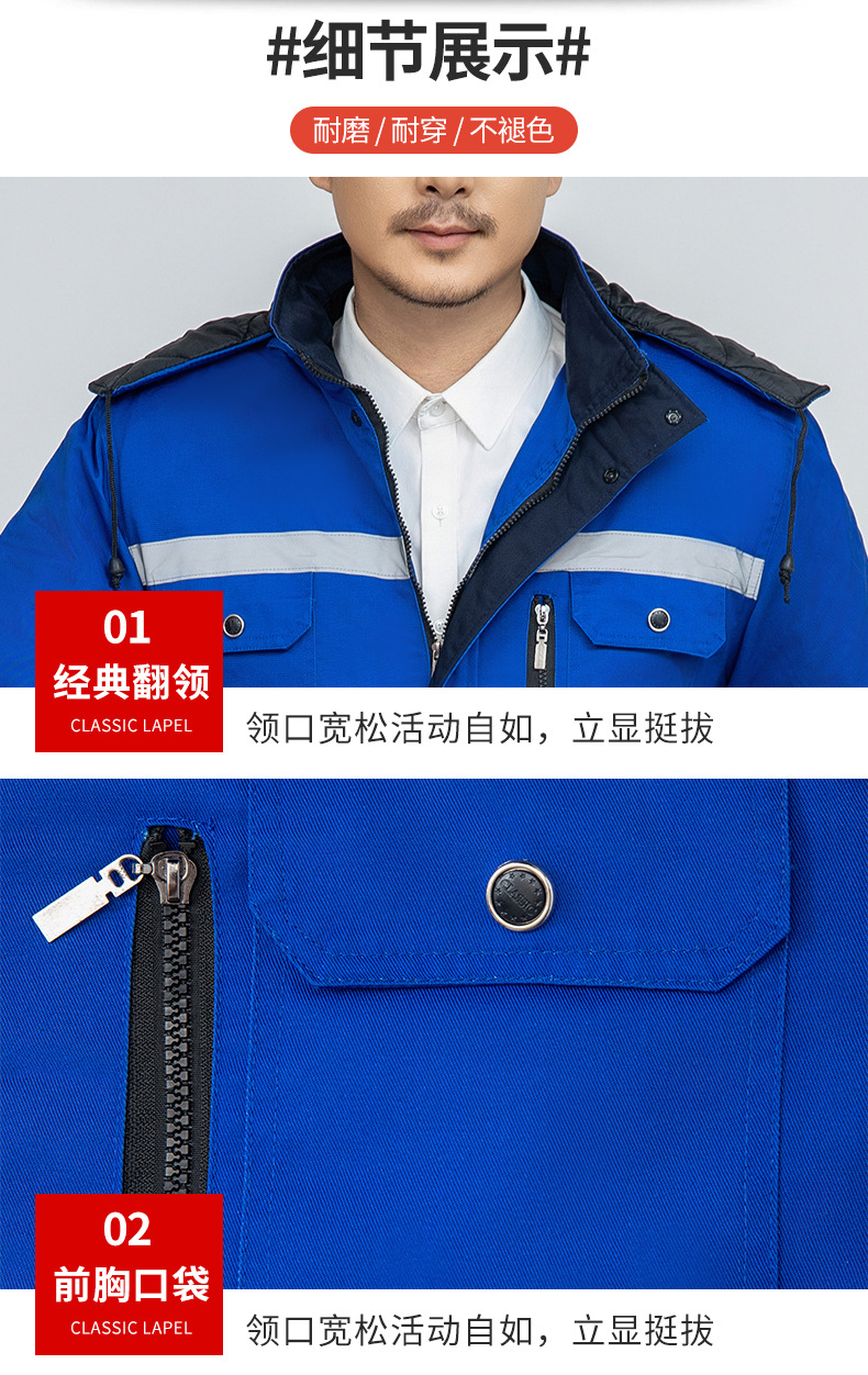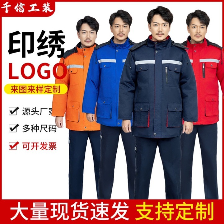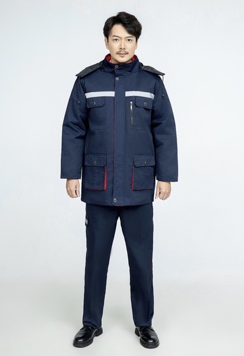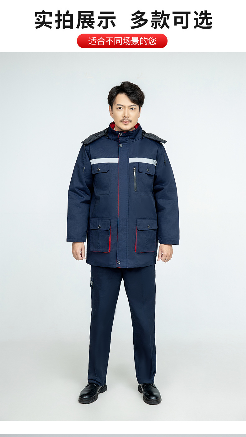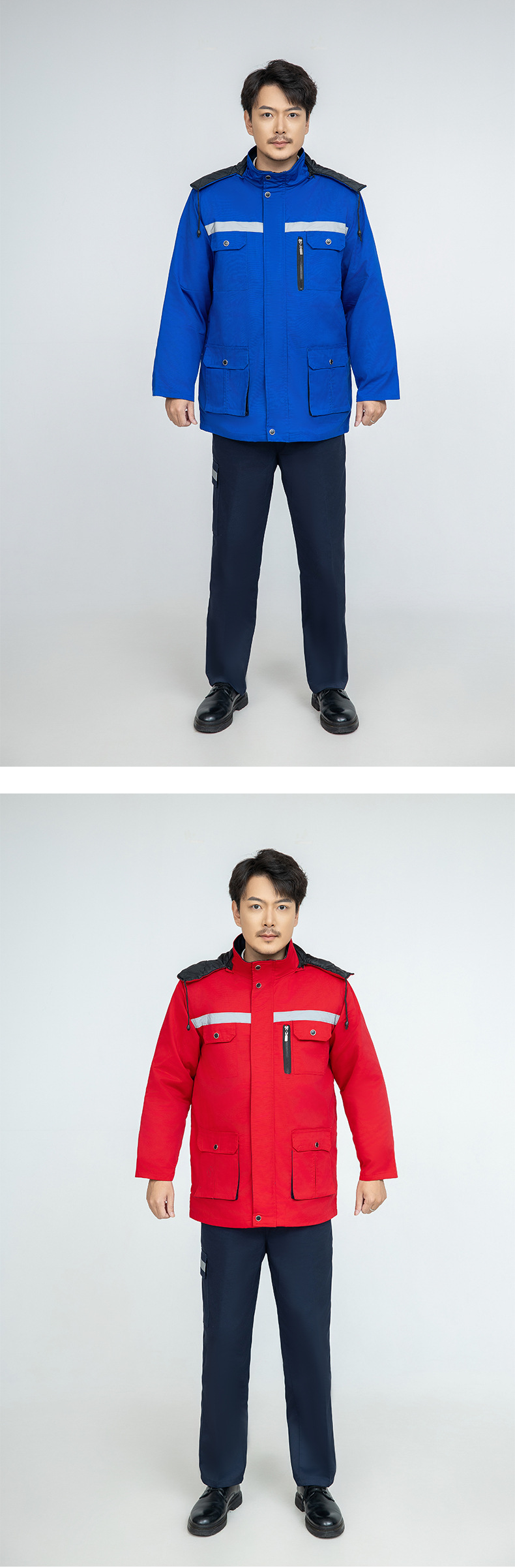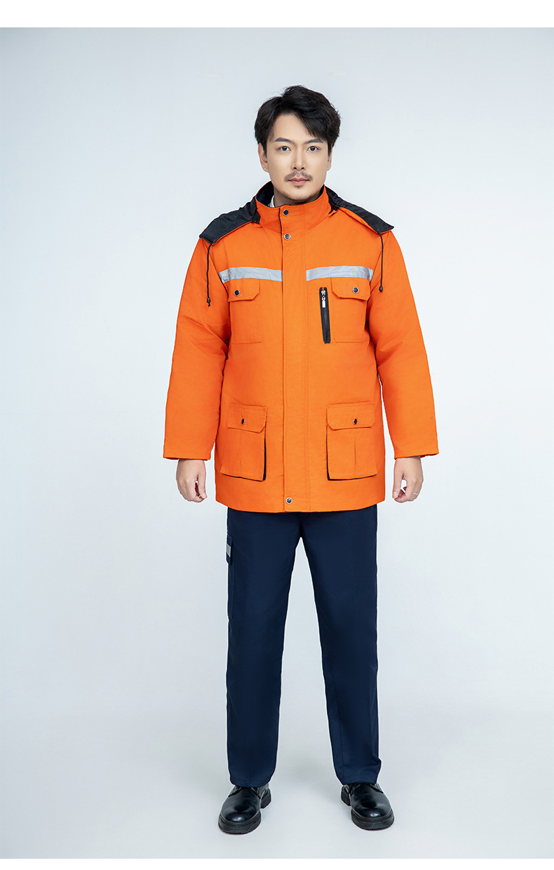 Зимнее хлопковое пальто средней длины, утепленное для защиты от холода, со съемными светоотражающими полосами, подходит для авторемонта, прочный смесовой материал полиэстер-хлопок, средней длины, съемный хлопок.