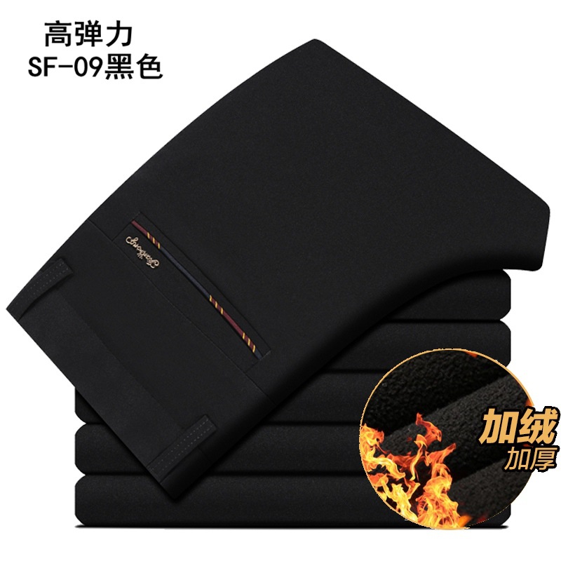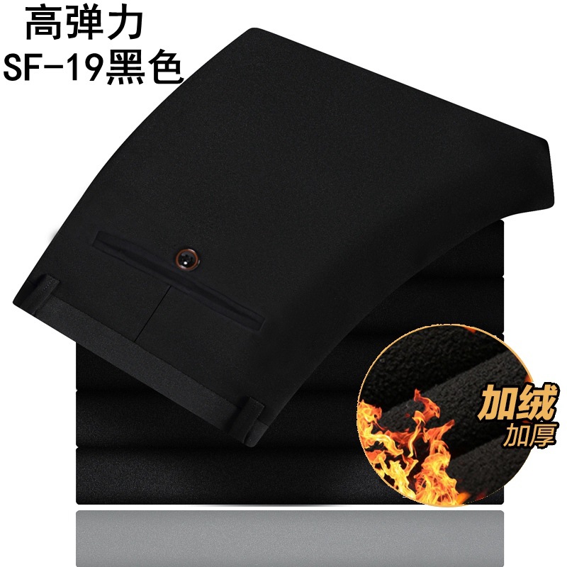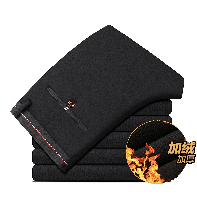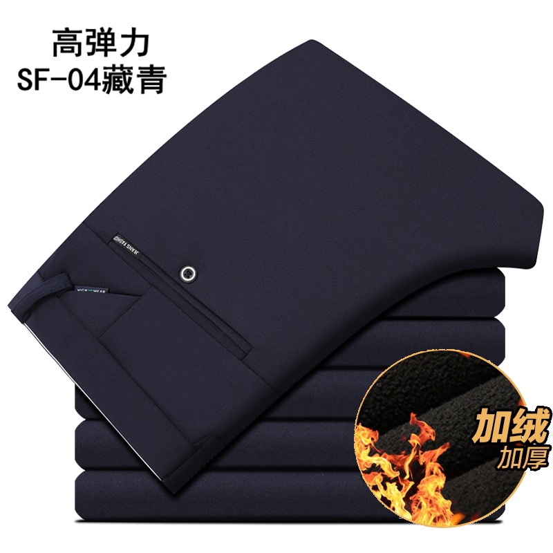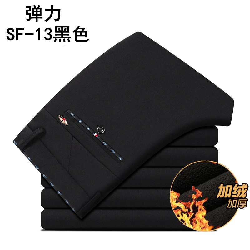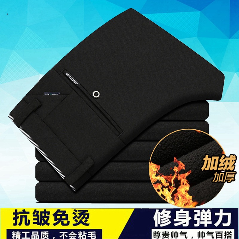 Осенние и зимние мужские повседневные брюки без горячего прямого костюма эластичные деловые мужские брюки с плюшевыми длинными брюками для мужчин