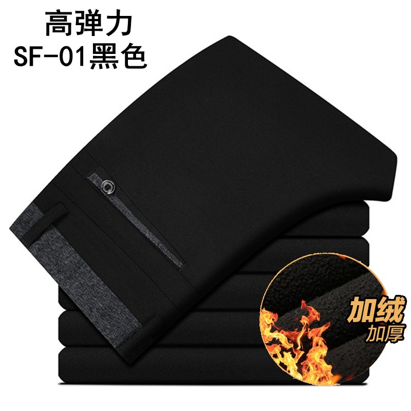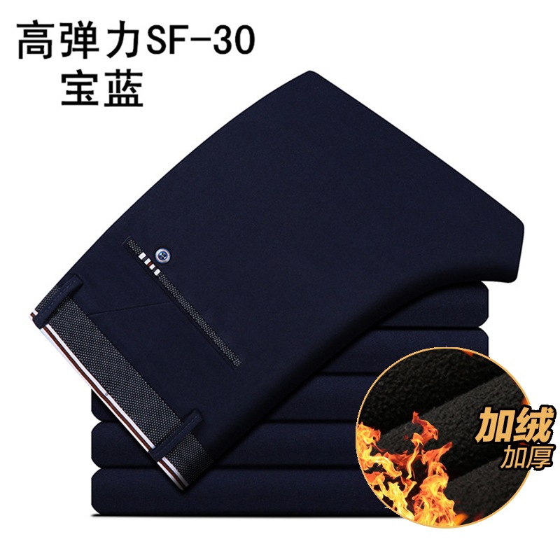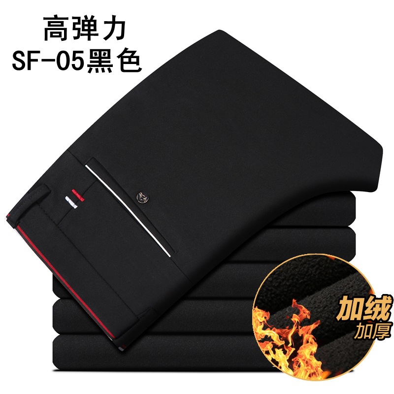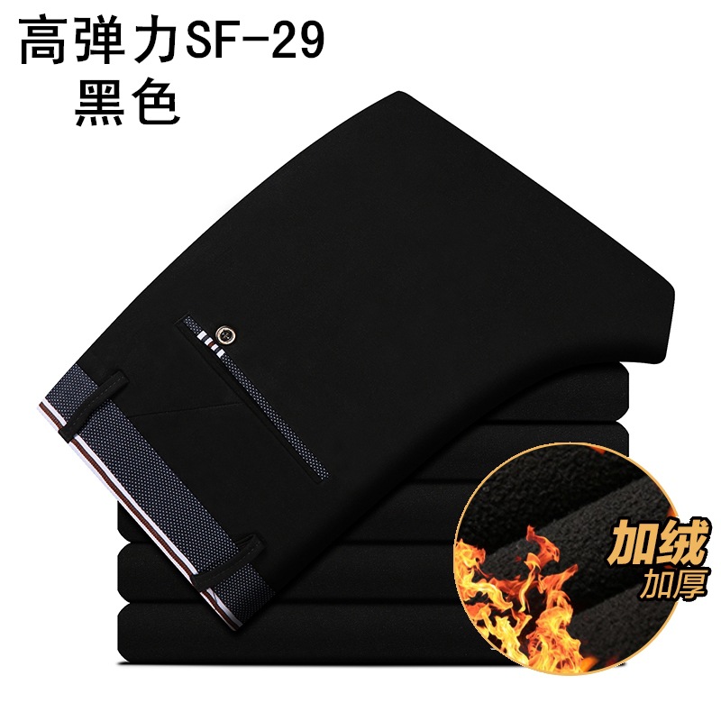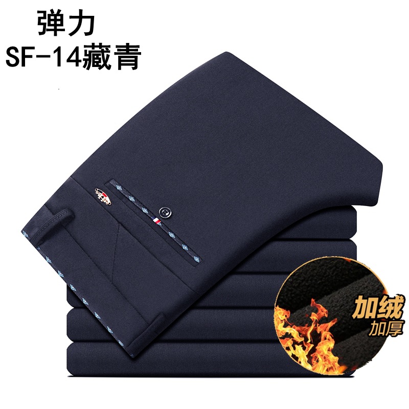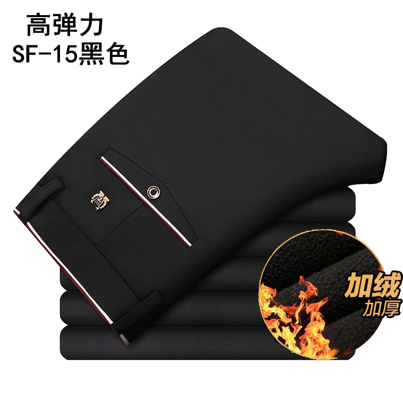 Осенние и зимние мужские повседневные брюки без горячего прямого костюма эластичные деловые мужские брюки с плюшевыми длинными брюками для мужчин