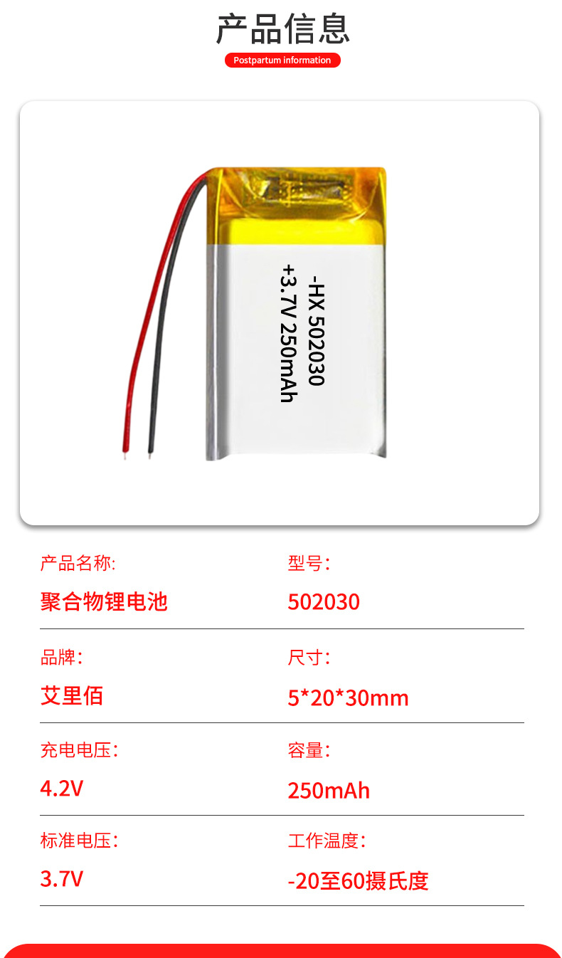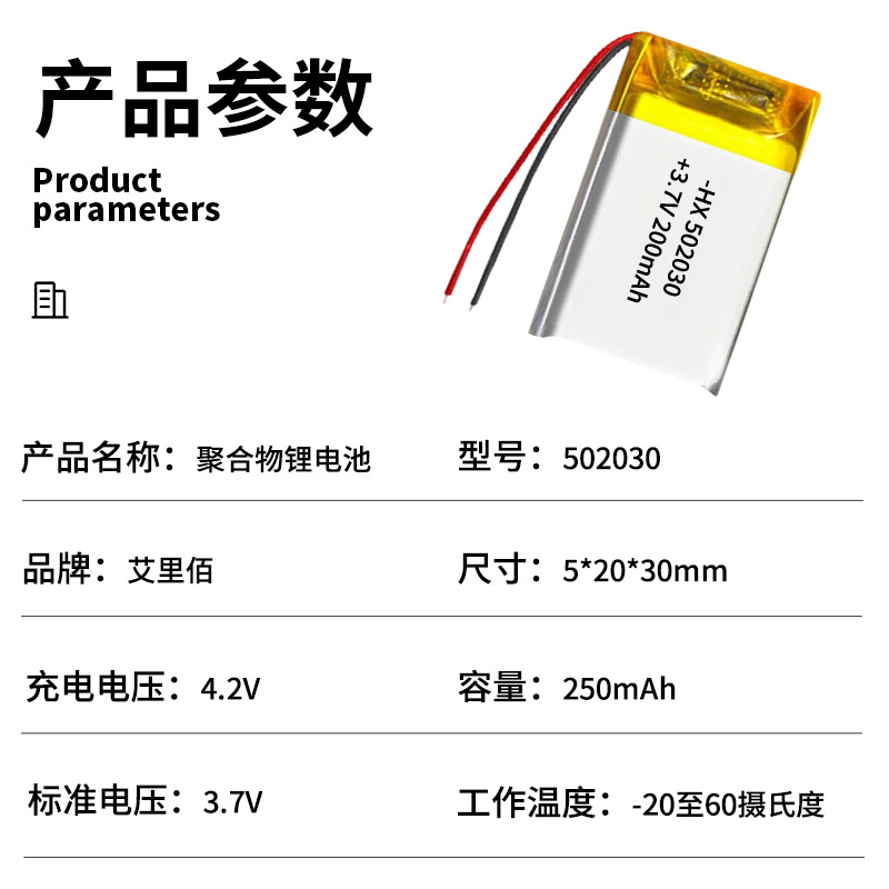 Литий-полимерный аккумулятор 3.7V-502030/250mAh для игрушек, сертифицированный, полноразмерный элемент питания 502030/200mAh от производителя