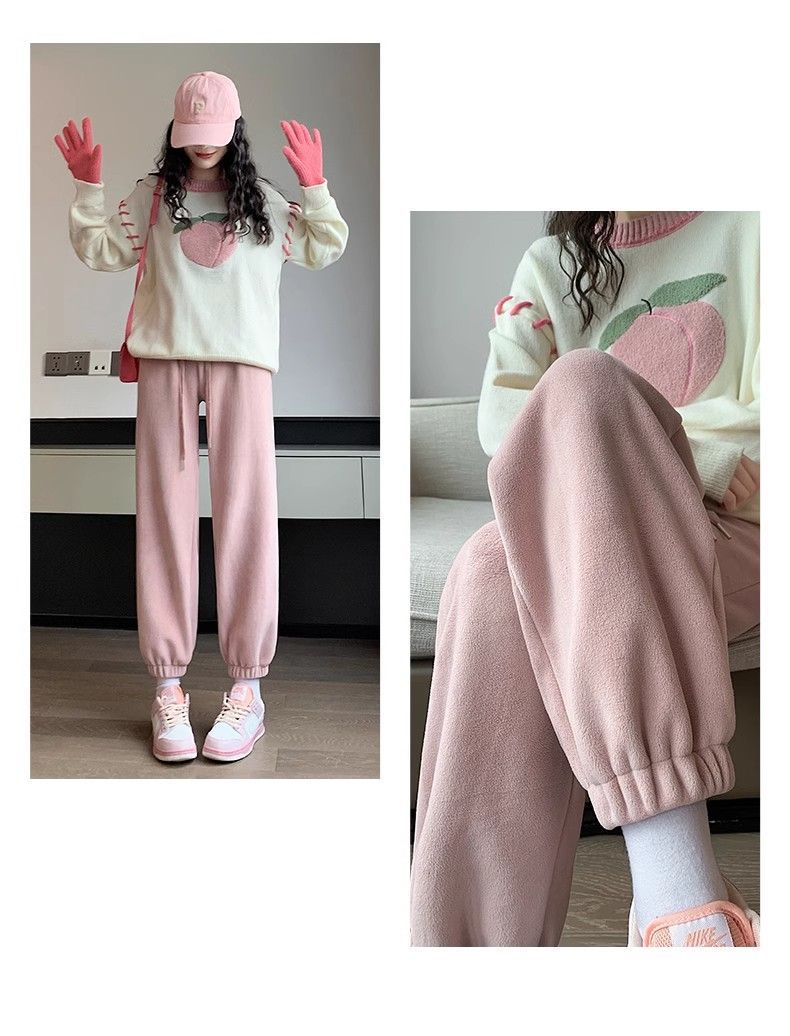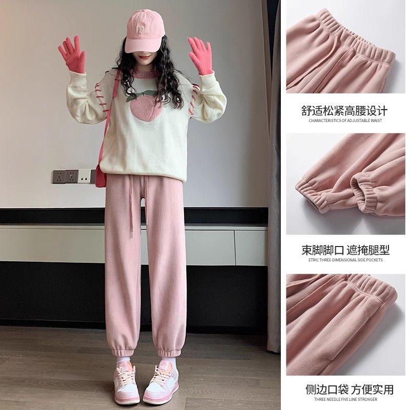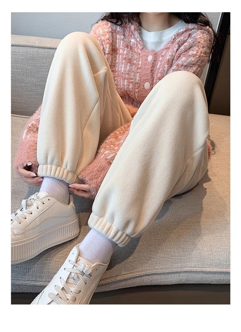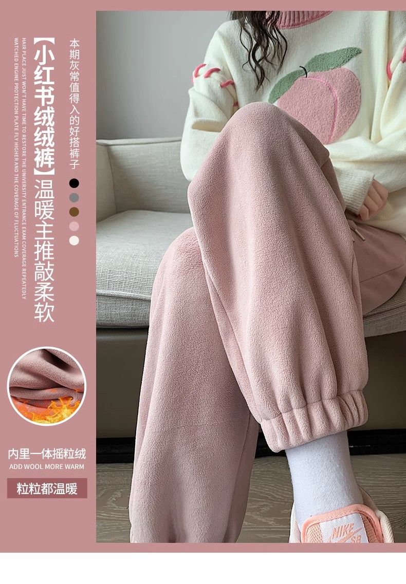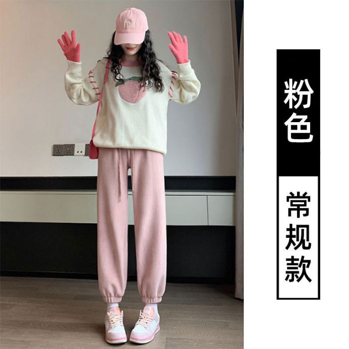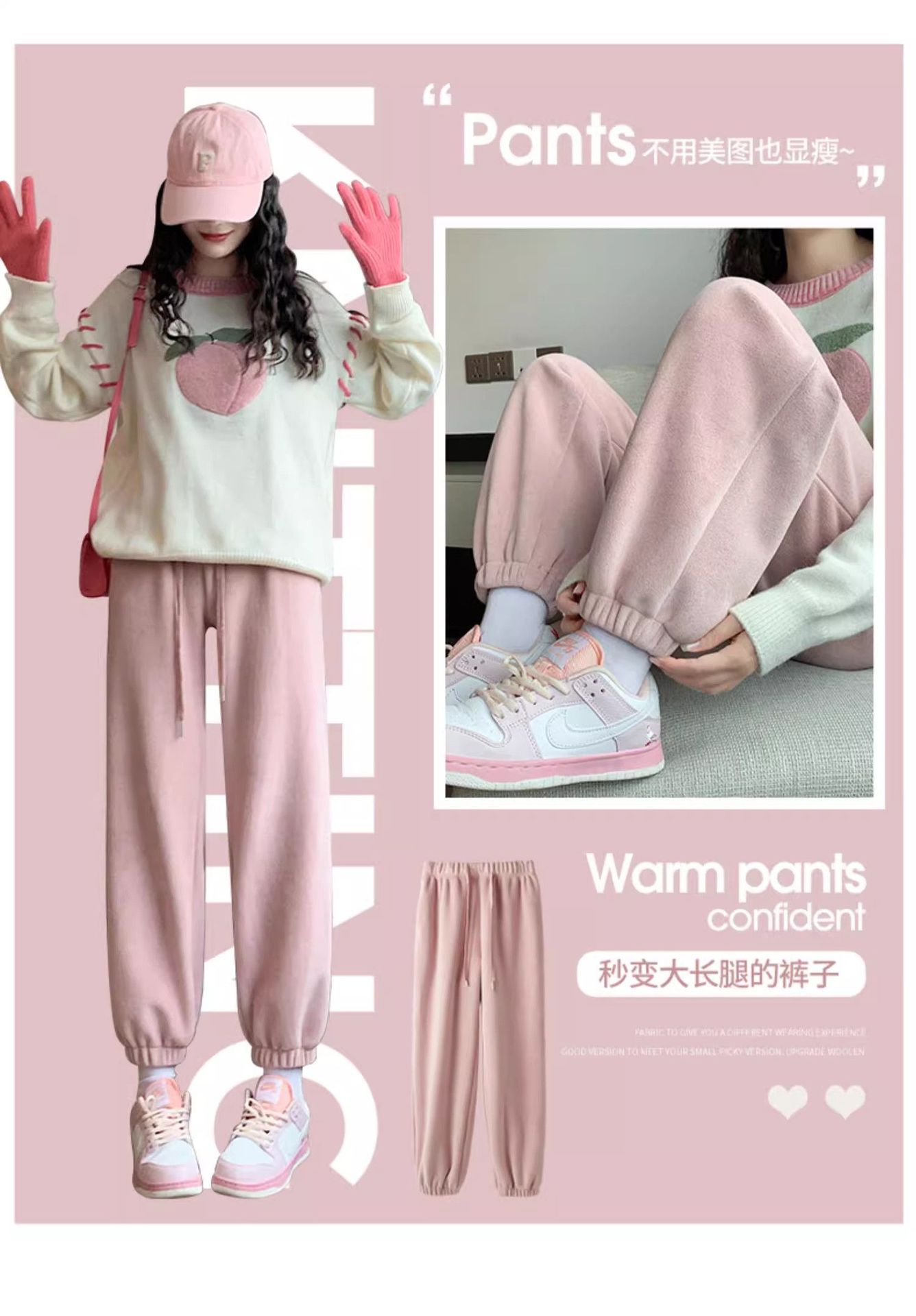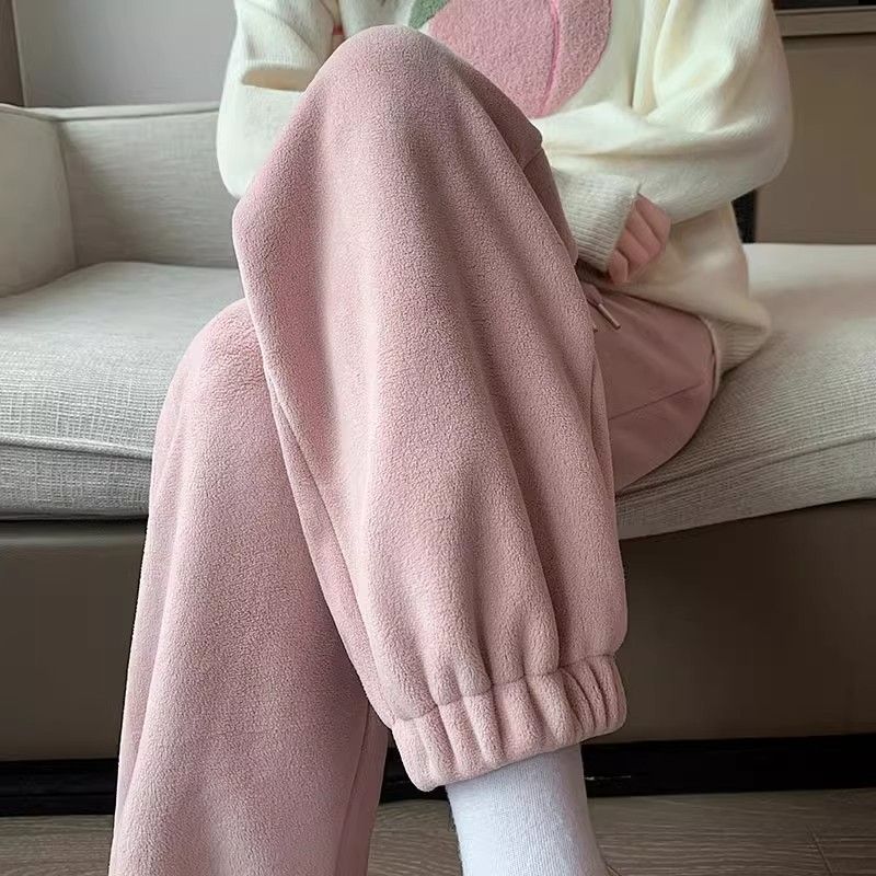 Розовые плюшевые спортивные брюки женские весенние осенние и зимние толстые снаружи носить теплые ветрозащитные хлопчатобумажные брюки