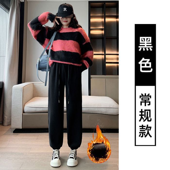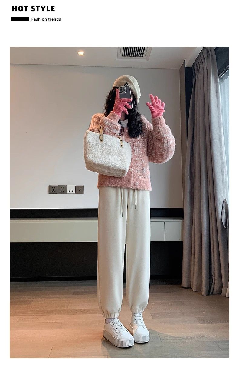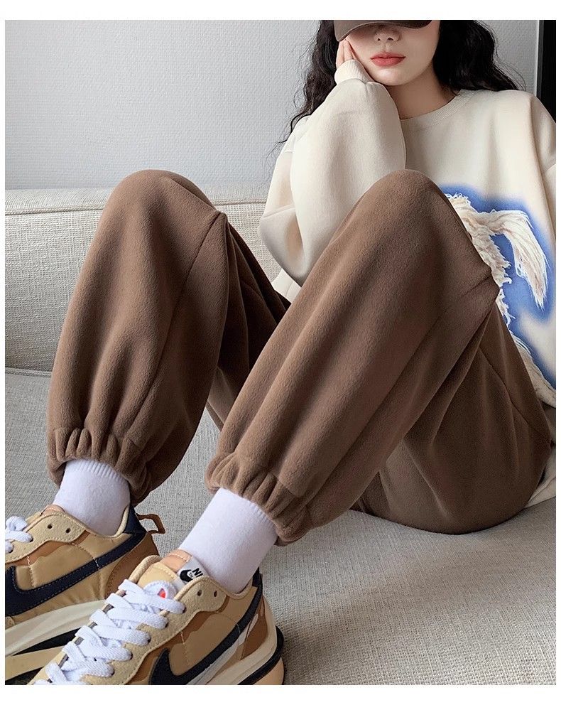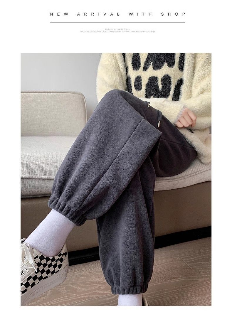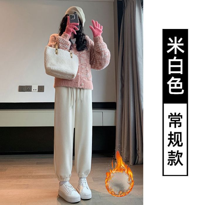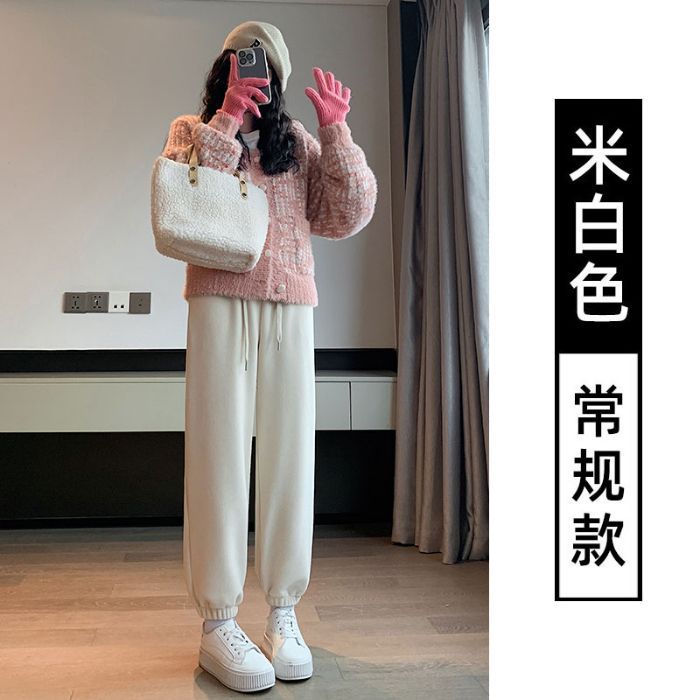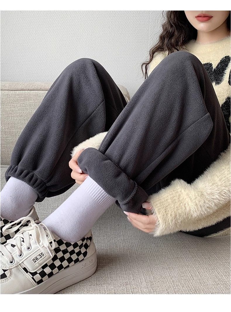 Розовые плюшевые спортивные брюки женские весенние осенние и зимние толстые снаружи носить теплые ветрозащитные хлопчатобумажные брюки