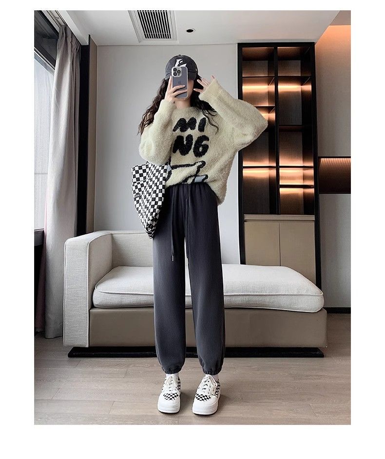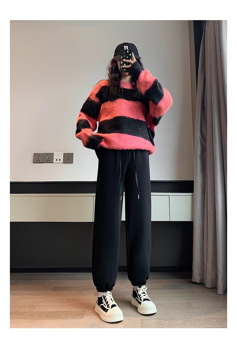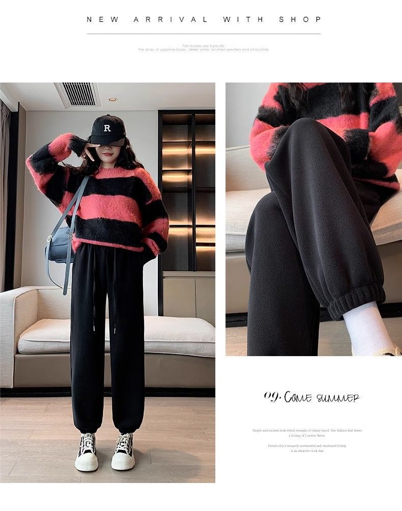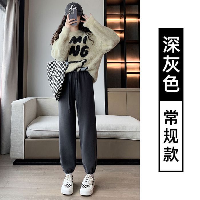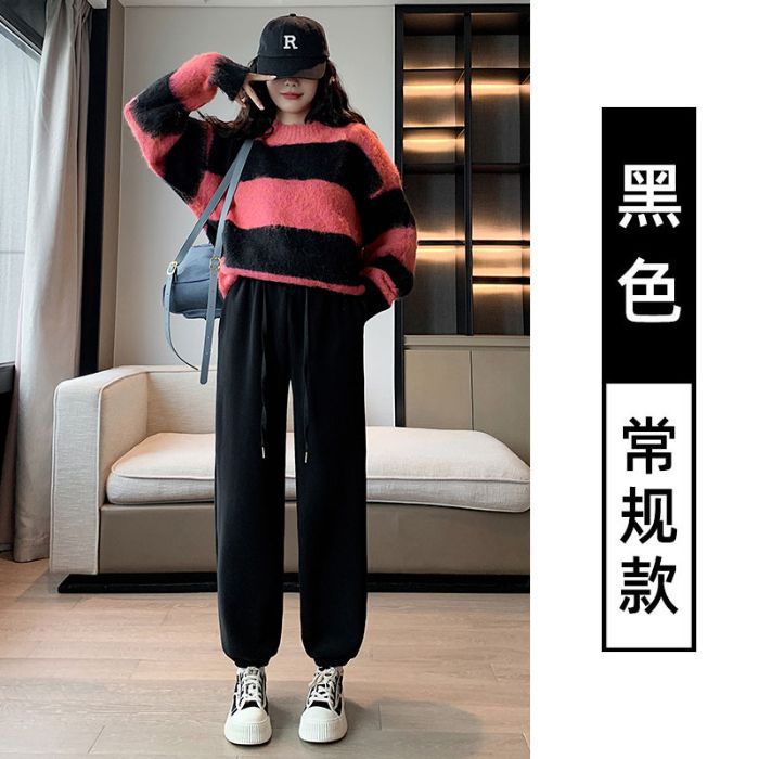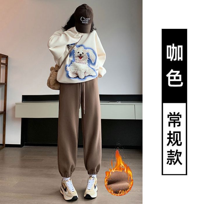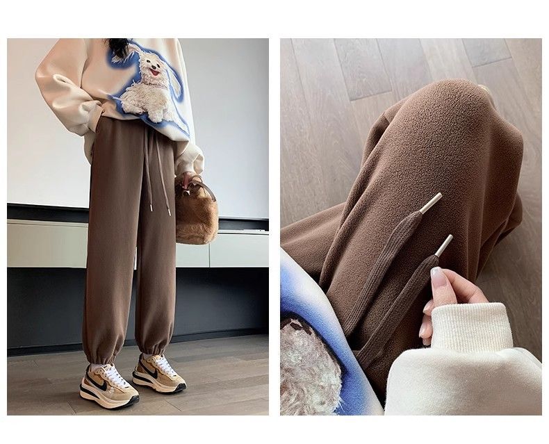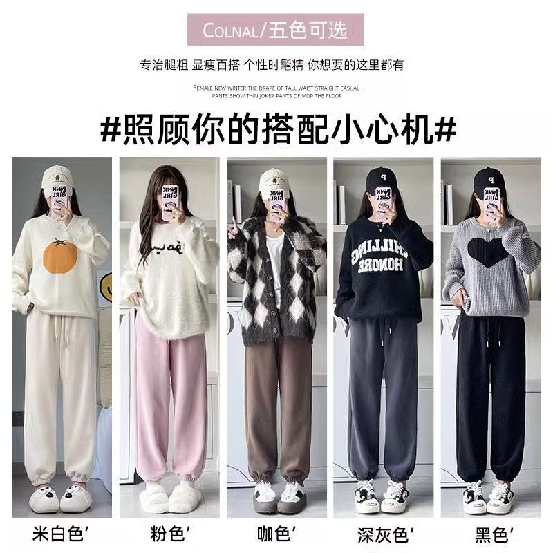Розовые плюшевые спортивные брюки женские весенние осенние и зимние толстые снаружи носить теплые ветрозащитные хлопчатобумажные брюки