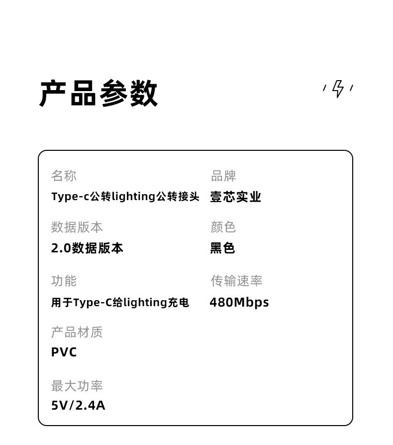 U-образный адаптер type-c «папа» для освещения «папа»