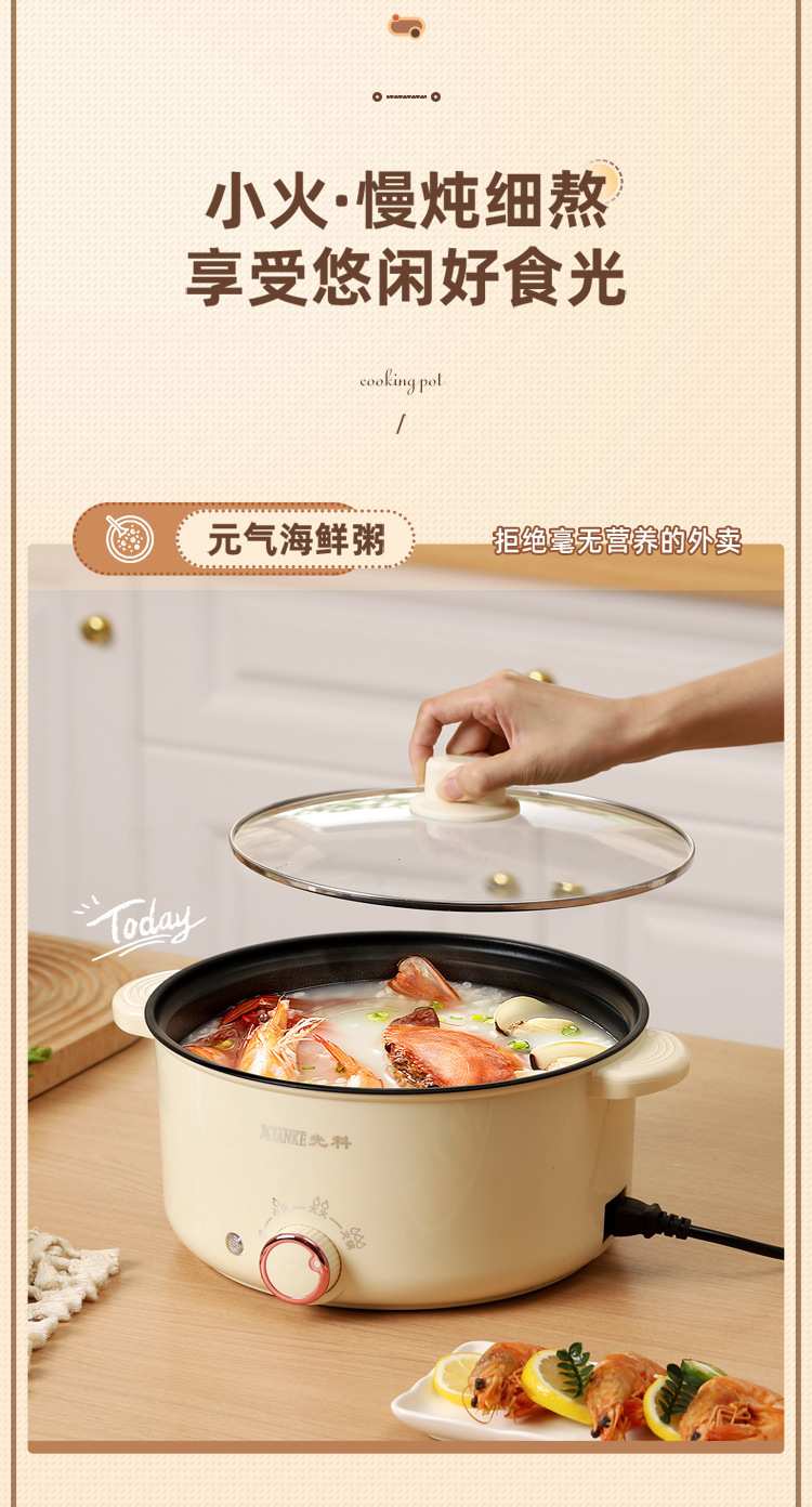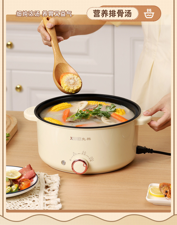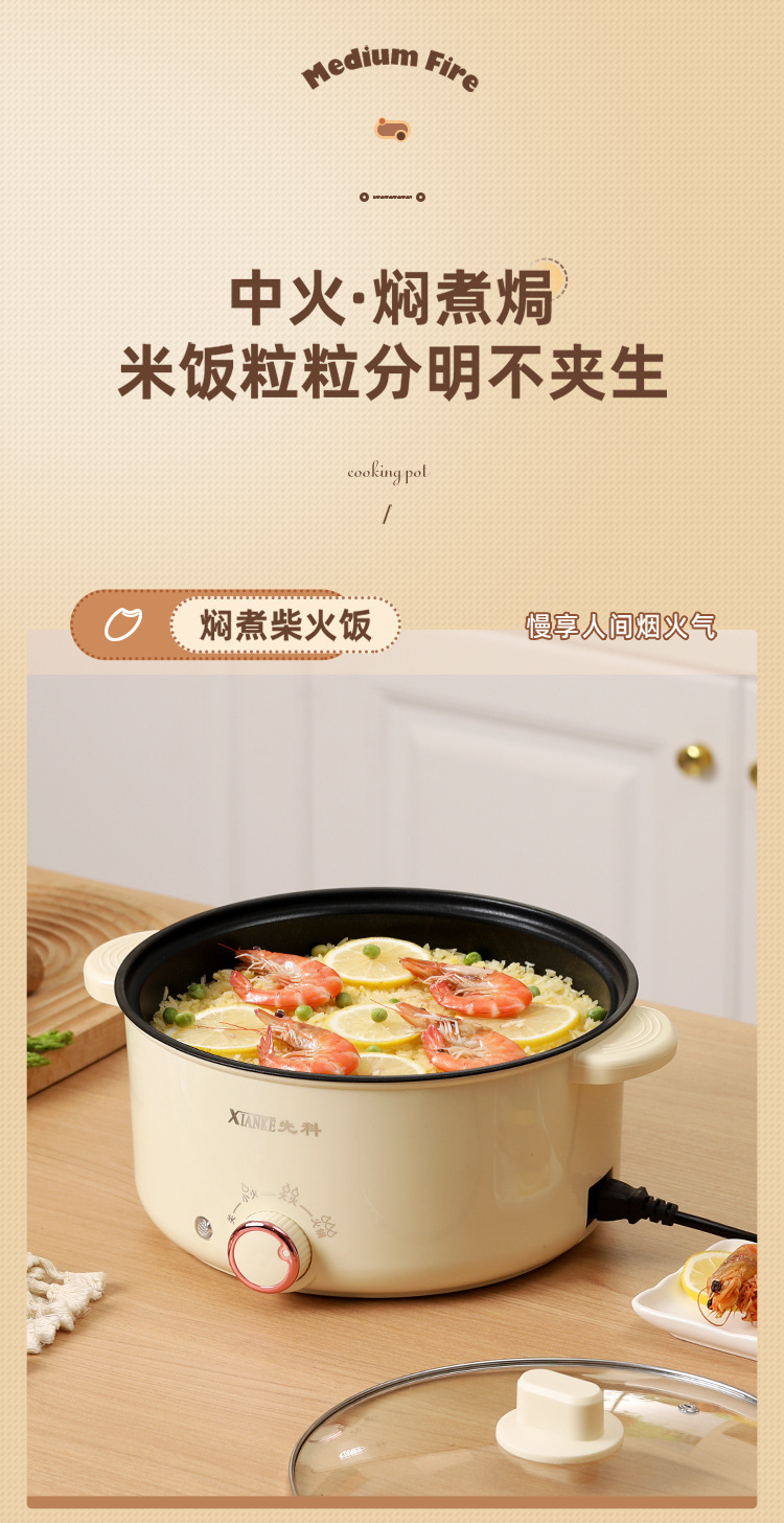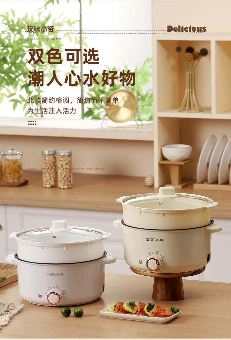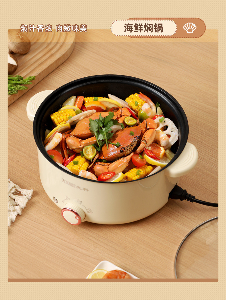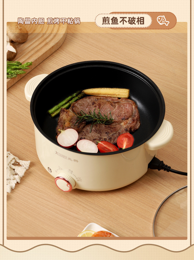 Электрическая кастрюля Xianke, электрическая кастрюля с двумя ушками, бытовая кастрюля с антипригарным покрытием, небольшая электрическая кастрюля для общежития, универсальная электрическая кастрюля, электрический вок