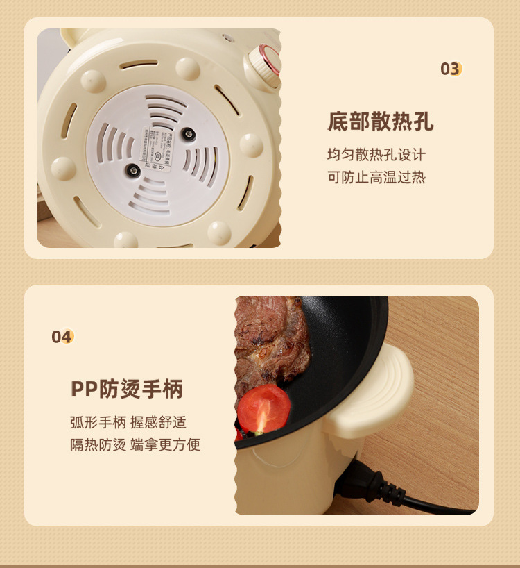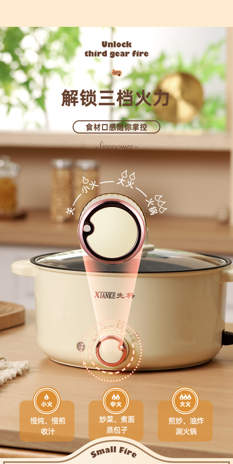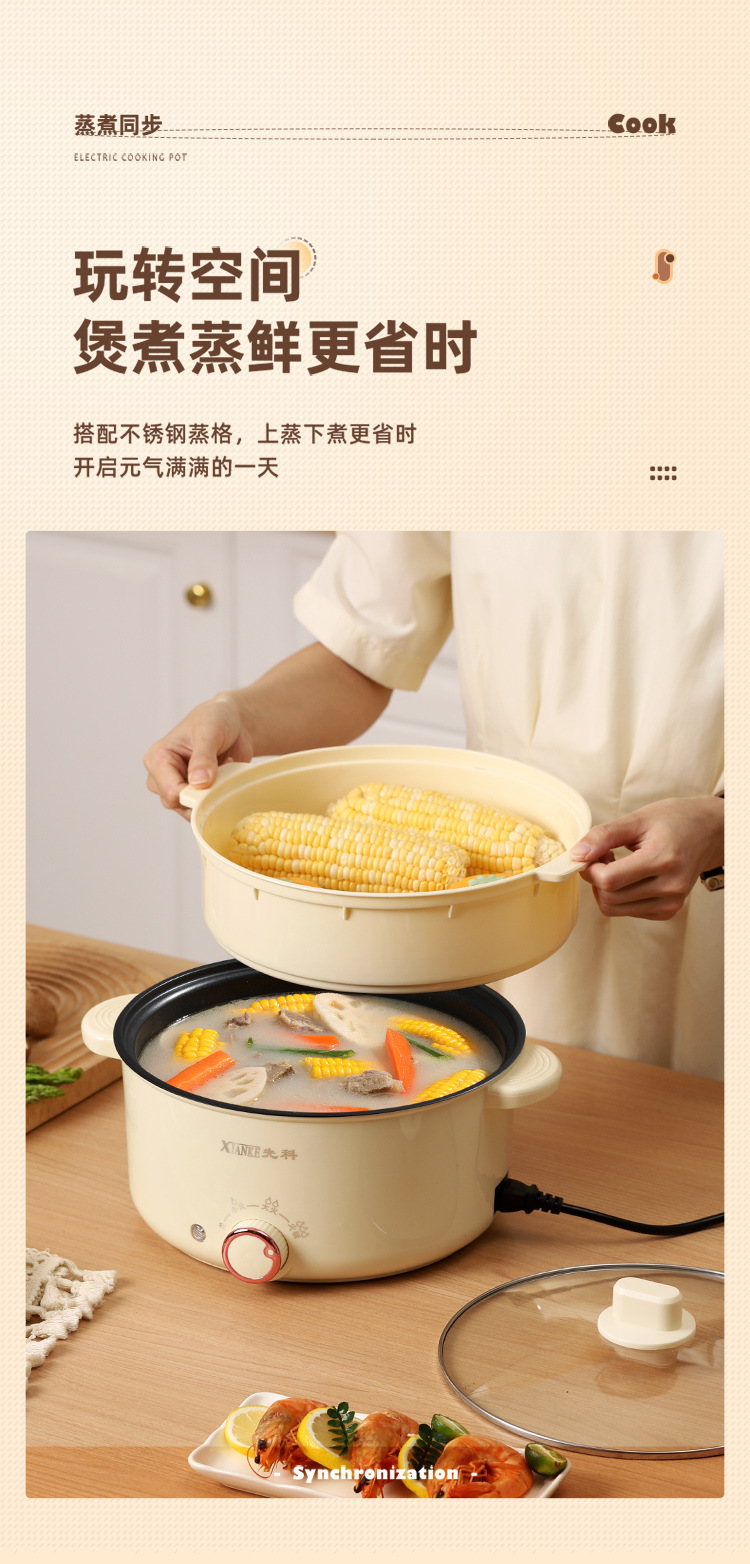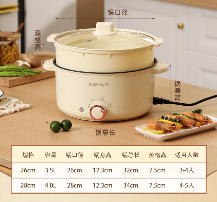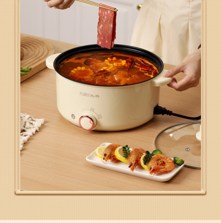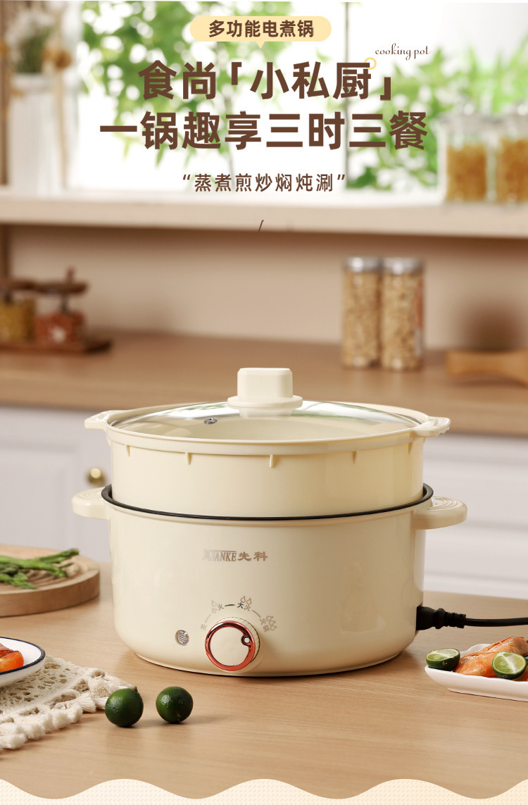 Электрическая кастрюля Xianke, электрическая кастрюля с двумя ушками, бытовая кастрюля с антипригарным покрытием, небольшая электрическая кастрюля для общежития, универсальная электрическая кастрюля, электрический вок