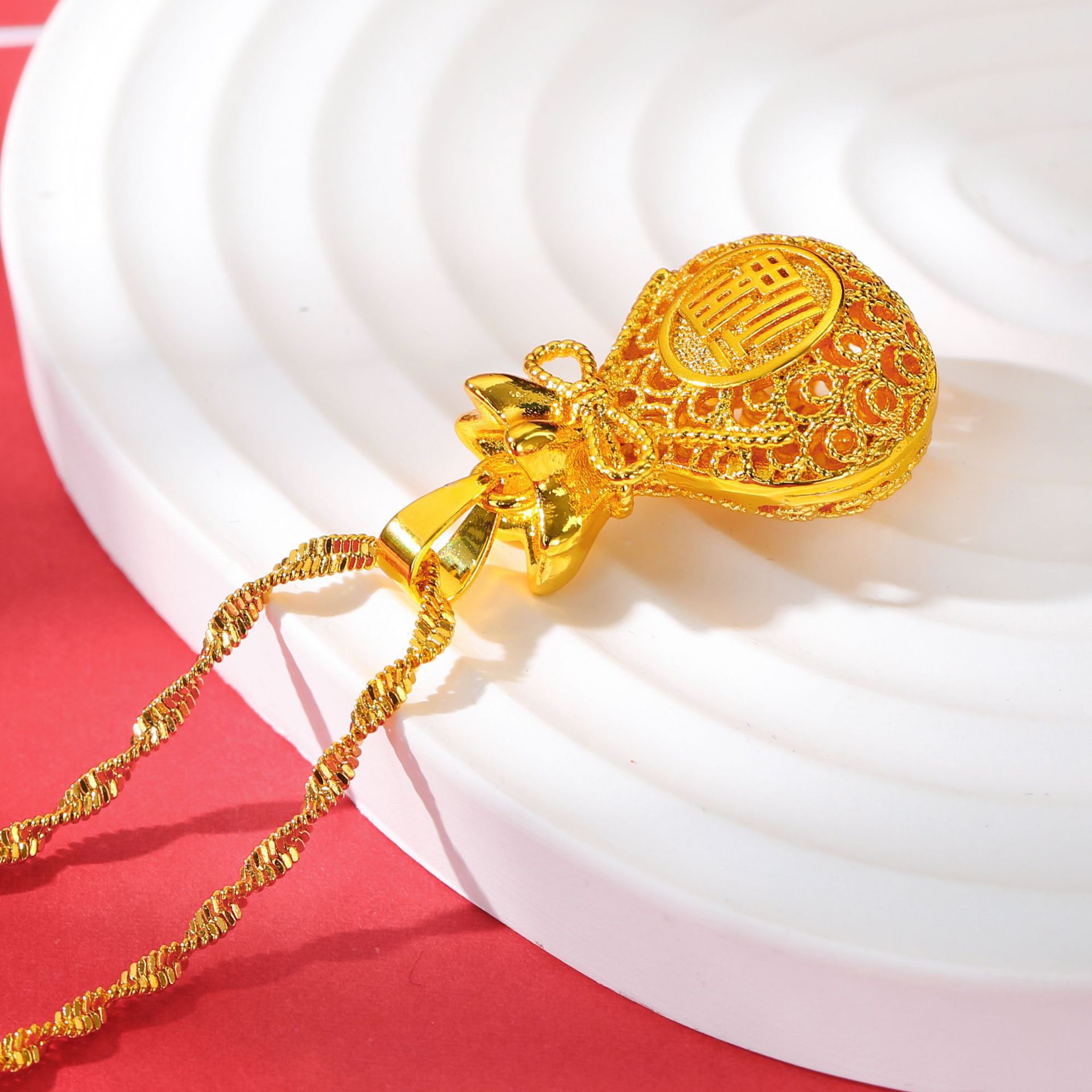 Двусторонний кулон-сумка благословения; Двусторонний мешочек на удачу + цепочка с волнистым узором