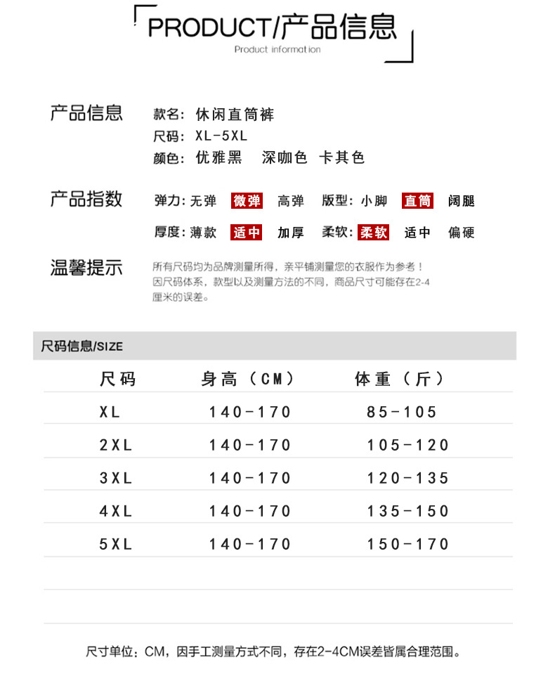 XL (рекомендуется 42.5-55kg); 2XL (рекомендуется 55-62.5kg); 3XL (рекомендуется 62.5-70kg); 4XL (рекомендуется 70-77.5kg); 5XL (рекомендуется 77.5-87.5kg)