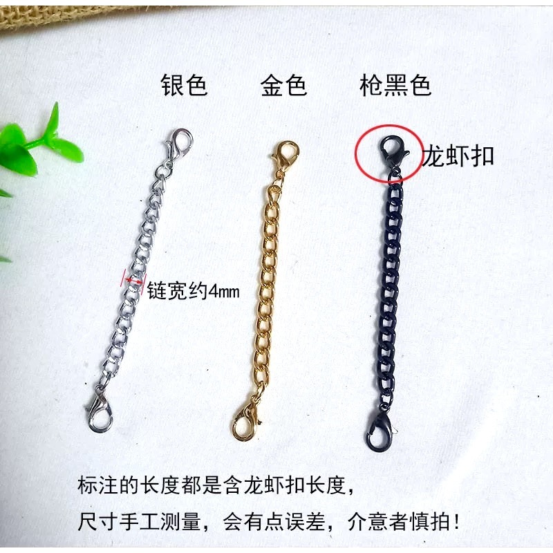 尺寸:链子1-100cm 龙虾扣尺寸:301 302 303 304 305或者更换其他配件 比如钥匙圈 一圈半 狗扣 书圈 s钩