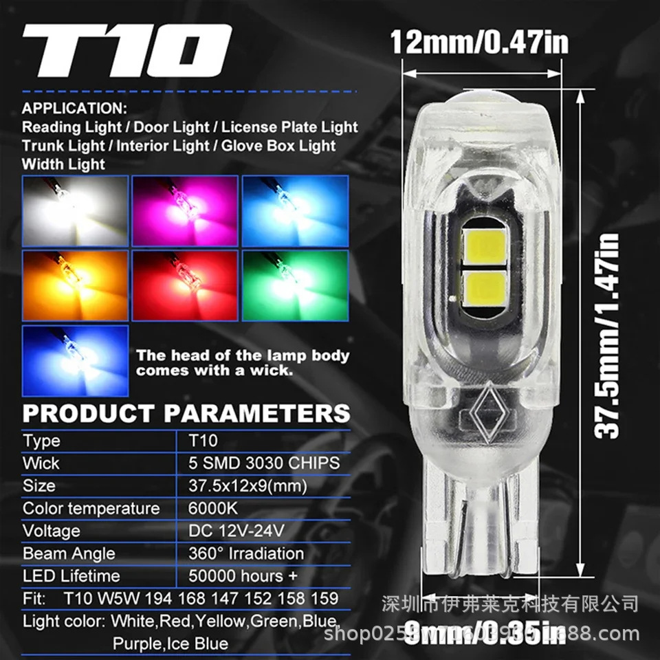 Мотоцикл поворотный фонарь T10 2835 3030 5smd автомобиль светодиодный подсветка 5W5 бесполюсный декодированный номерной свет