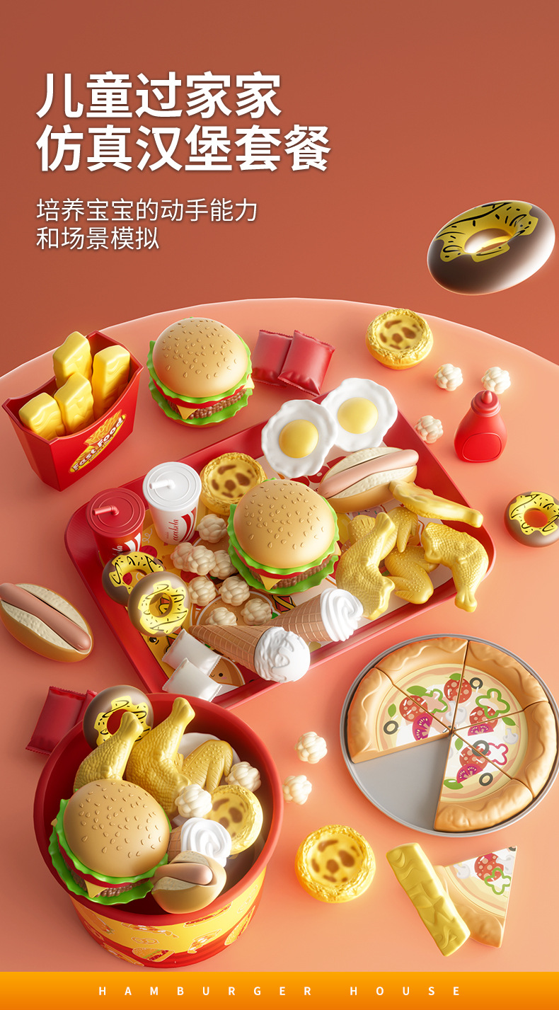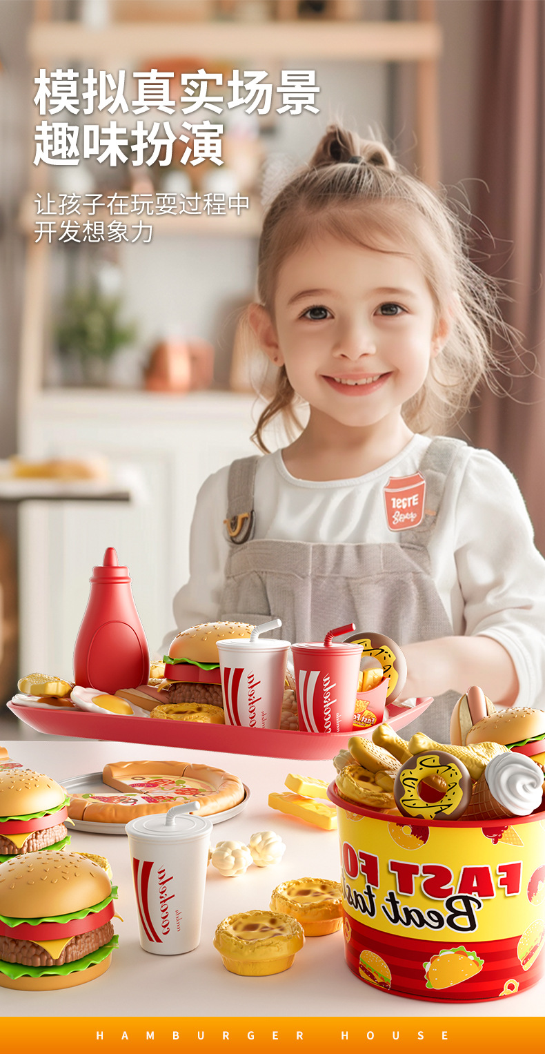 Детский гамбургер Домашняя бочка пакет Домашняя кухня Моделирование еды Гамбургер картофель фри развивающая модель игрушка