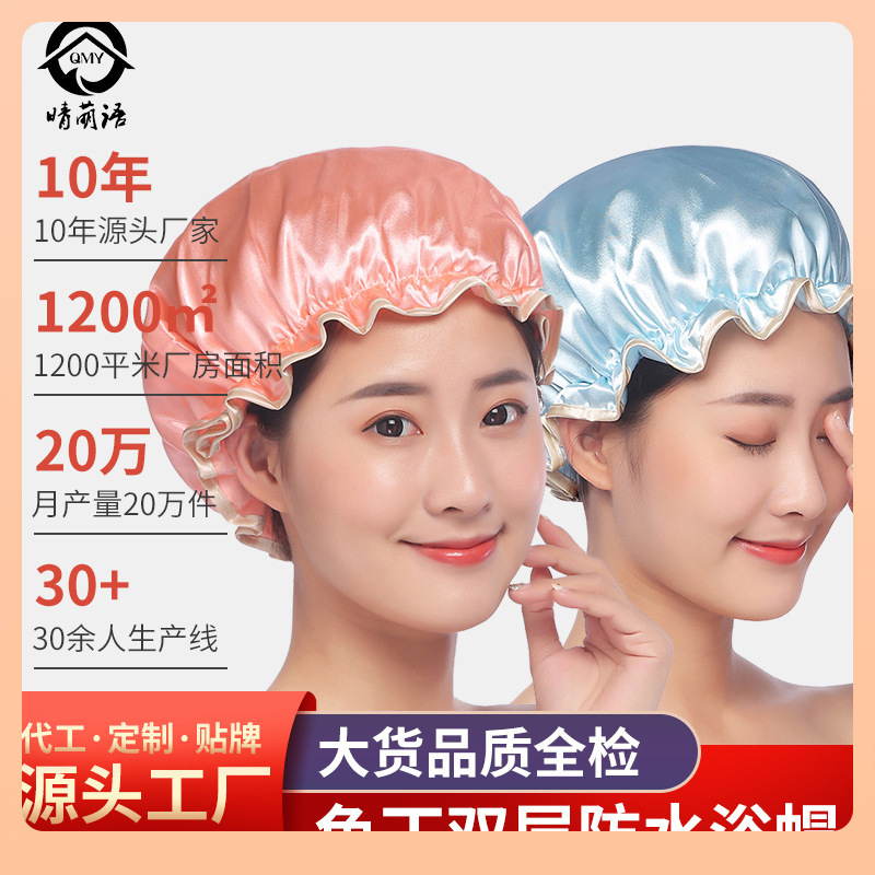 ⇓ Двухслойная водонепроницаемая шапочка для душа, одноразовая шапочка для волос, пылезащитная шапочка для душа из ЭВА с эффектом сатинового шелка, однотонная, оптовая продажа для трансграничной торговли