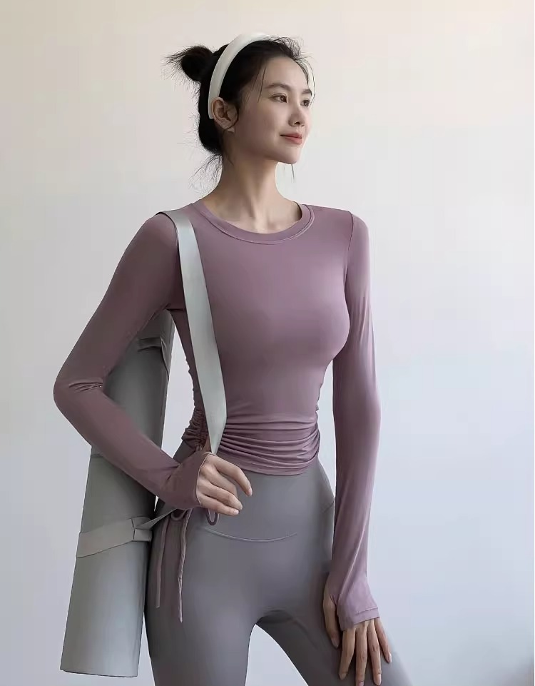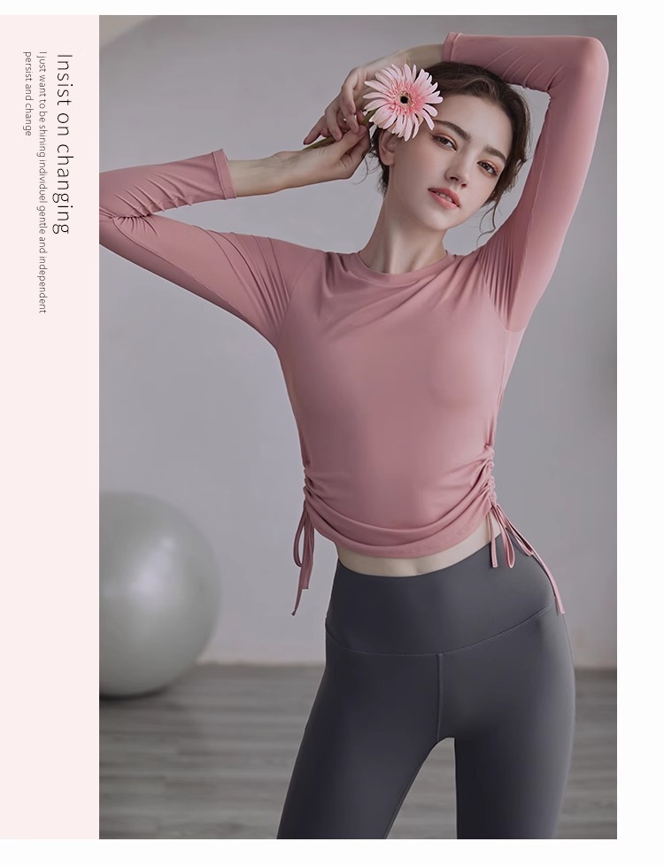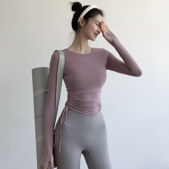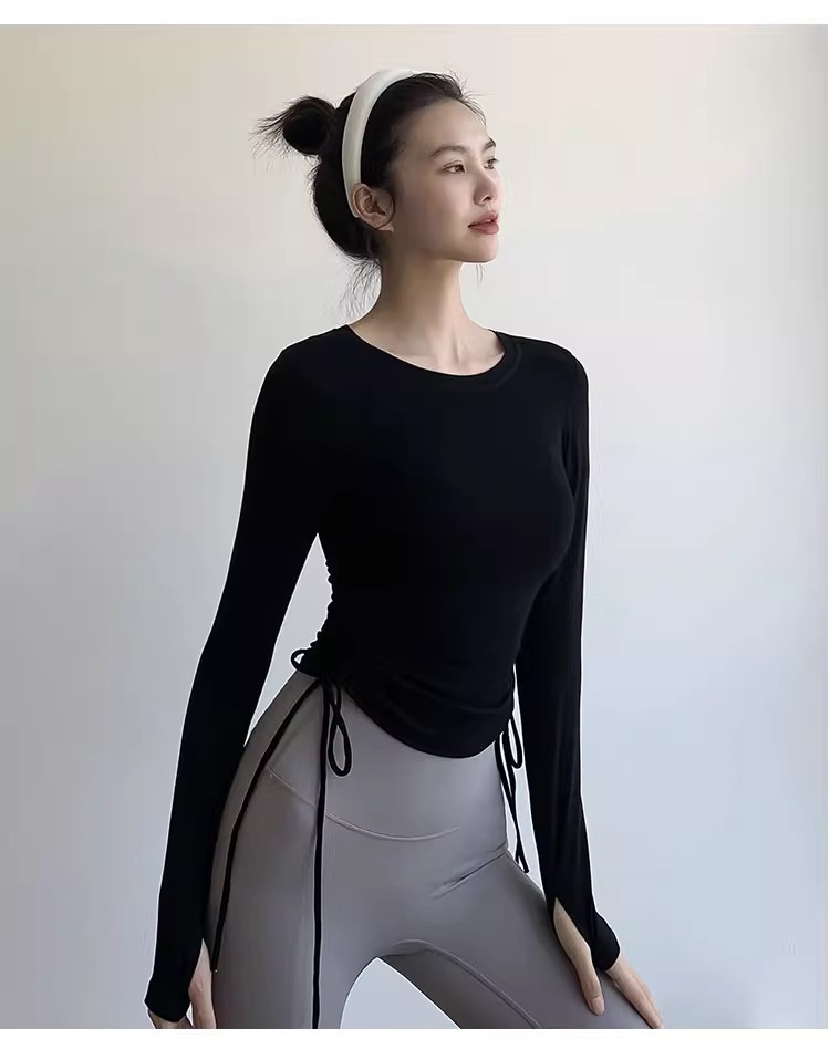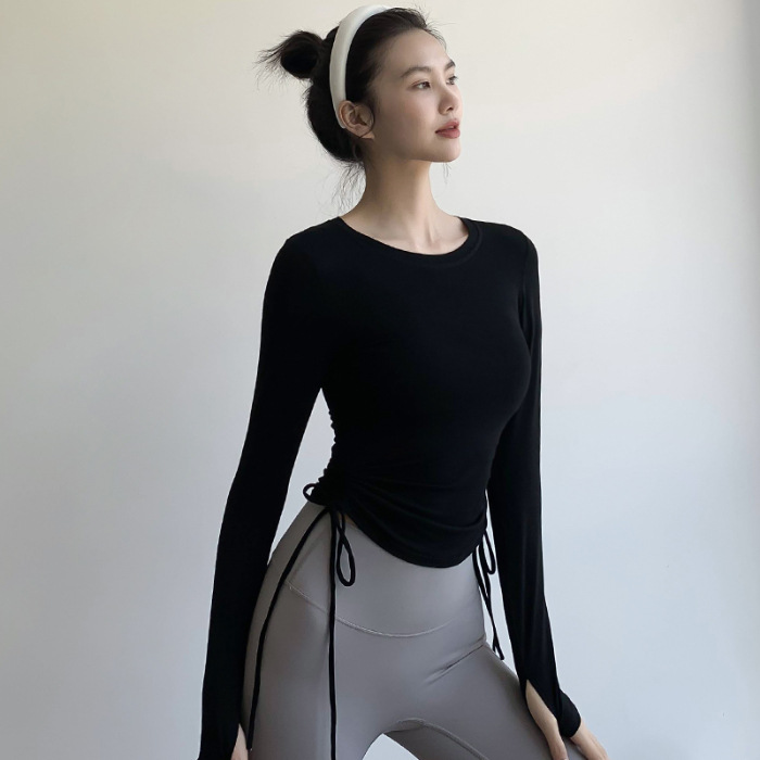 Магазин дрожания качества Модаль 260 г бег фитнес с длинными рукавами Тонкая одежда для йоги топ быстрая сухая футболка спортивная девушка