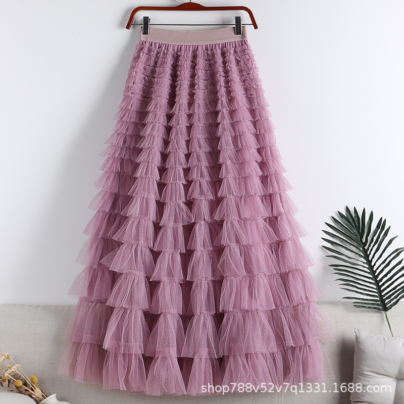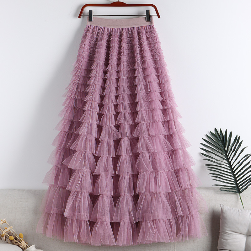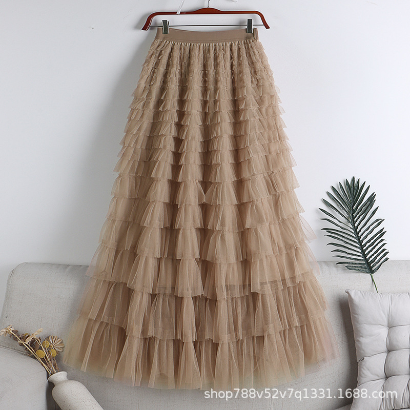 Многослойная юбка-сетка для женщин с дизайнерским подходом, маленький размер, новинка весна-лето 2025, длинная юбка А-силуэта